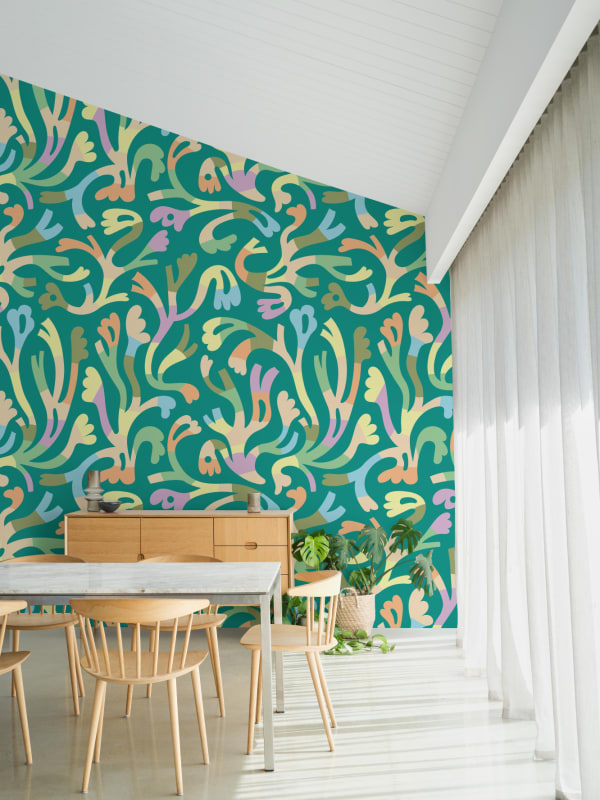 Repeat pattern wallpaper is the traditional style wallpaper as we’ve always known it. A repeat design that is printed onto rolls, and the number of rolls is determined by the size of the surface that you’re covering.