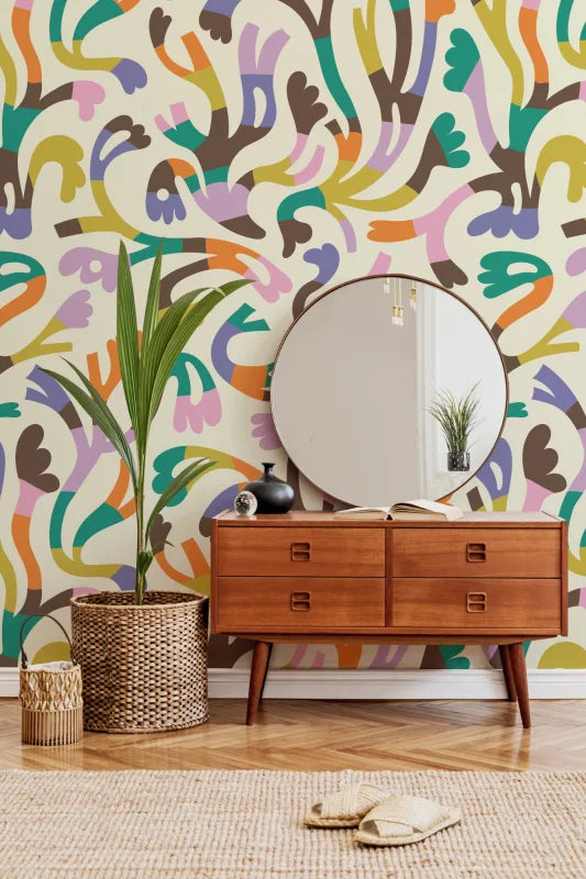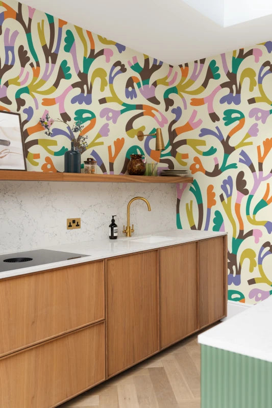 Repeat pattern wallpaper is the traditional style wallpaper as we’ve always known it. A repeat design that is printed onto rolls, and the number of rolls is determined by the size of the surface that you’re covering.
