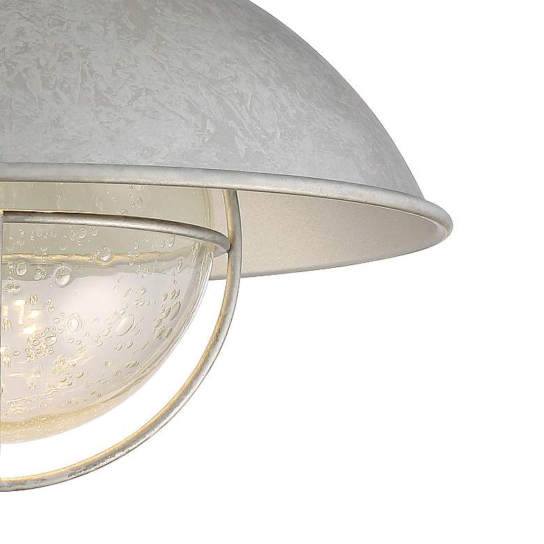 - Galvanized finish. Steel construction made to look galvanized. Seedy glass dome with wire overlay.
