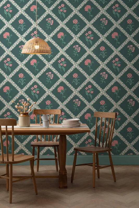 Repeat pattern wallpaper is the traditional style wallpaper as we’ve always known it. A repeat design that is printed onto rolls, and the number of rolls is determined by the size of the surface that you’re covering.