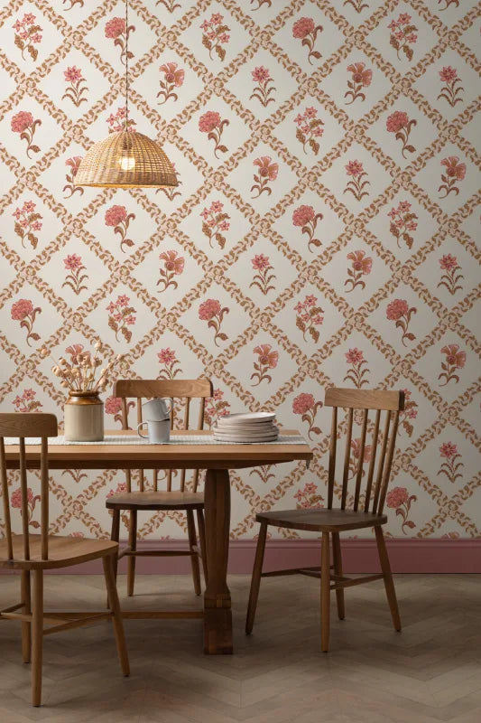 Repeat pattern wallpaper is the traditional style wallpaper as we’ve always known it. A repeat design that is printed onto rolls, and the number of rolls is determined by the size of the surface that you’re covering.