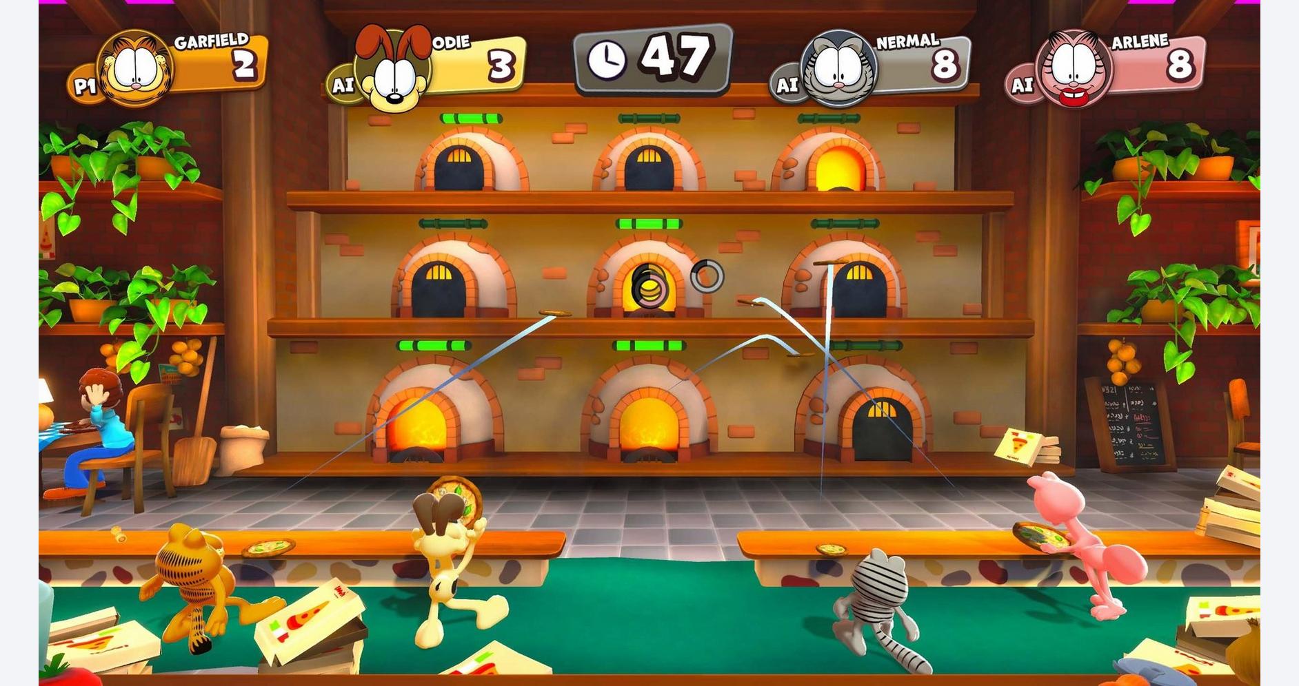 - 32 mini-games to discover in famous Garfield environments such as Jon’s house, the pizzeria or Liz’s pet clinic…