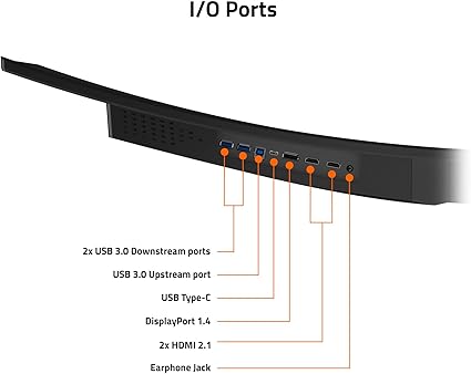 - Connectivity: 2x HDMI 2.1, 1x Displayport 1.4, 1x USB Type-C, 2x USB 3.0 Downstream ports, 1x USB 3.0 Upstream port, 1x Earphone Jack
