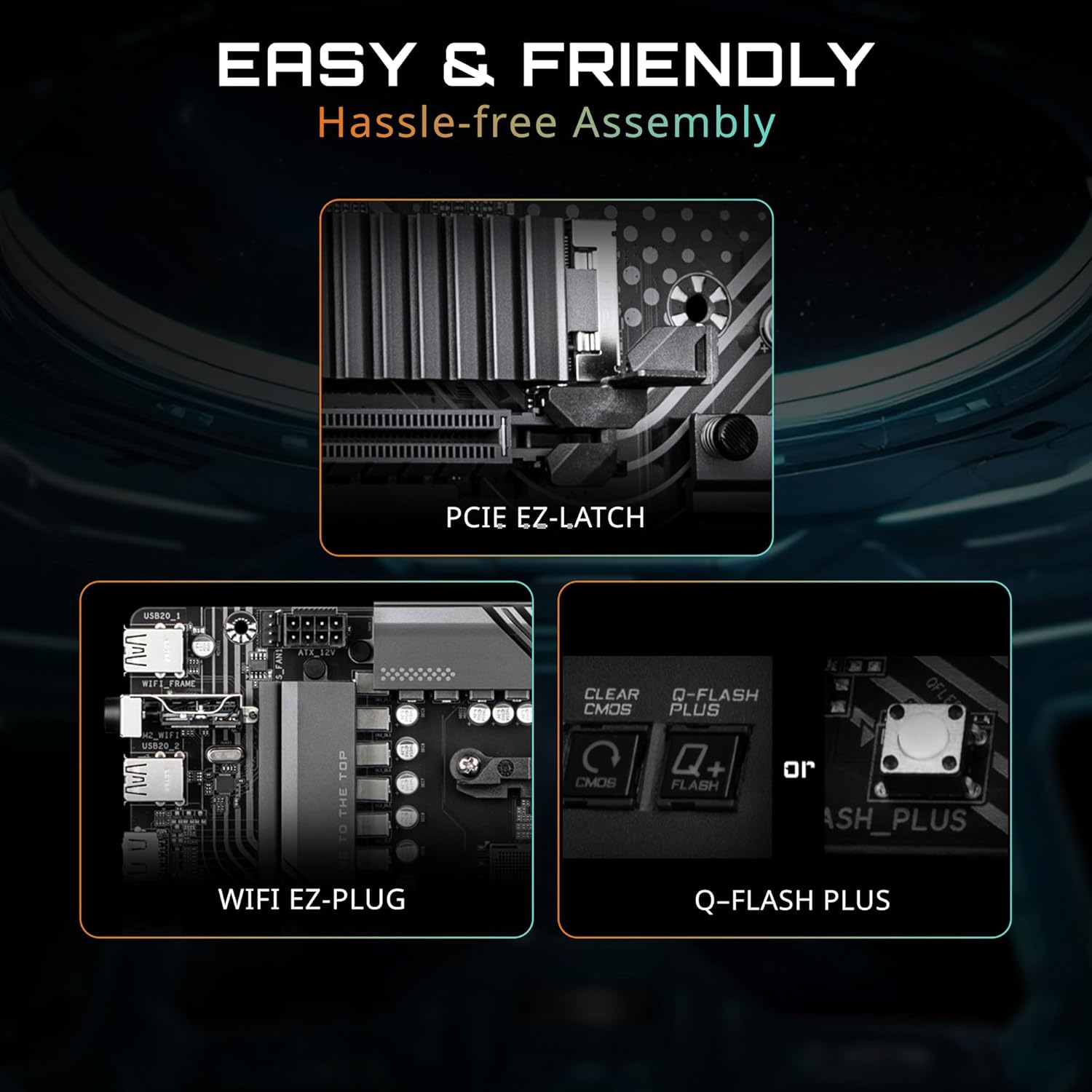 - Advanced Thermal Armor: Enlarged VRM heatsinks layered with 5 W/mk thermal pads for better heat dissipation. Pre-Installed I/O Armor for quicker PC DIY assembly.