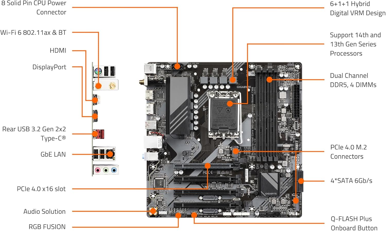 - Intel LGA 1700 Socket: Supports 14th, 13th, and 12th Gen Intel Core Series Processors