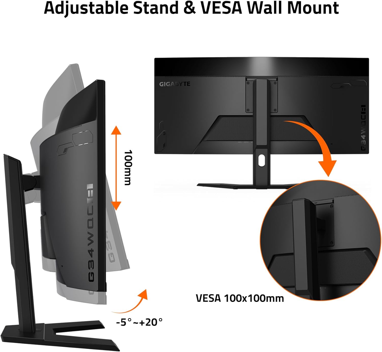 GIGABYTE G34WQC A 34" 144Hz Ultra-Wide Curved Gaming Monitor, 3440 x 1440 VA 1500R , 1ms (MPRT) Response Time, 90% DCI-P3, VESA Display HDR400, FreeSync Premium, BLACK (G34WQC A-SA)