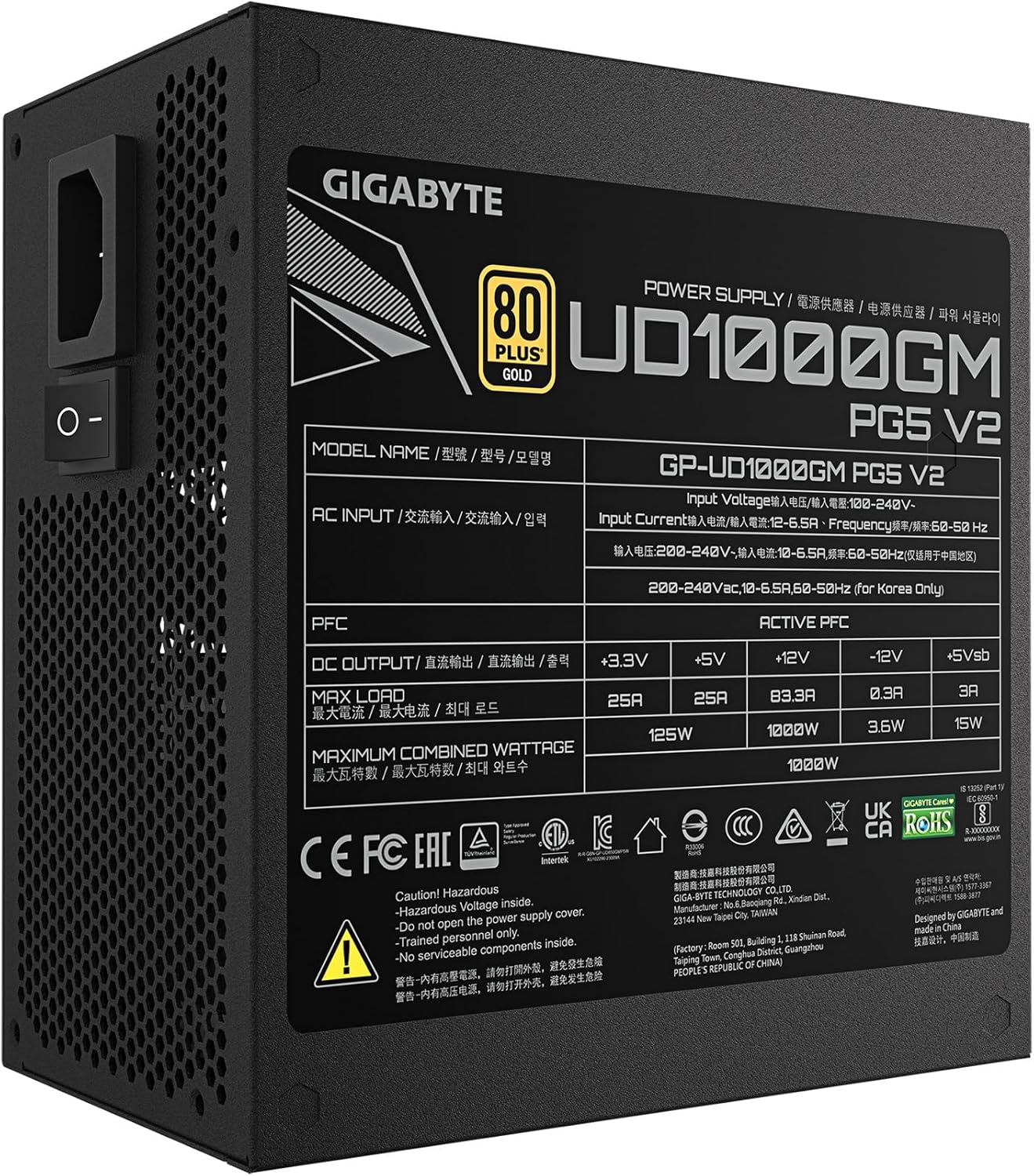 GIGABYTE UD1000GM PG5 V2-1000W 80 Plus Gold Certified - PCIe5.1 Ready - ATX3.1 - Fully Modular Power Supply (UD1000GM PG5 V2)