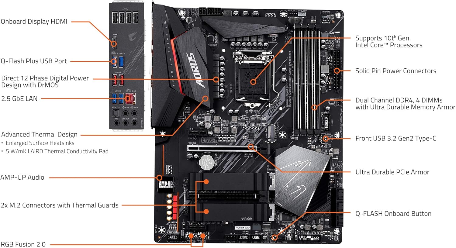 GIGABYTE Z490 AORUS Elite (Intel LGA1200/Z490/ATX/2xM.2/Realtek ALC1200/SATA 6Gb/s/USB 3.2 Gen 2/2.5 GbE LAN/RGB Fusion/Gaming Motherboard) Brand: GIGABYTE Model: AORUS Elite... Read more Read more