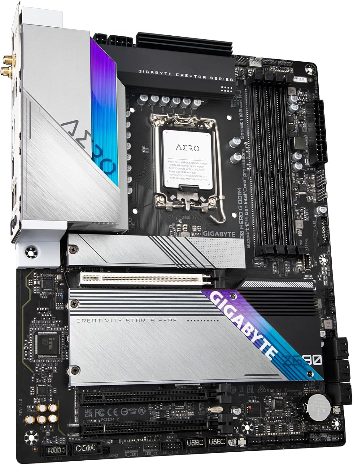 GIGABYTE Z690 AERO G DDR4 (LGA 1700/ Intel Z690/ ATX/ DDR4/ Quad M.2/ PCIe 5.0/ USB 3.2 Gen2X2 Type-C/ WiFi 6/ Intel 2.5 GbE LAN/ Motherboard)