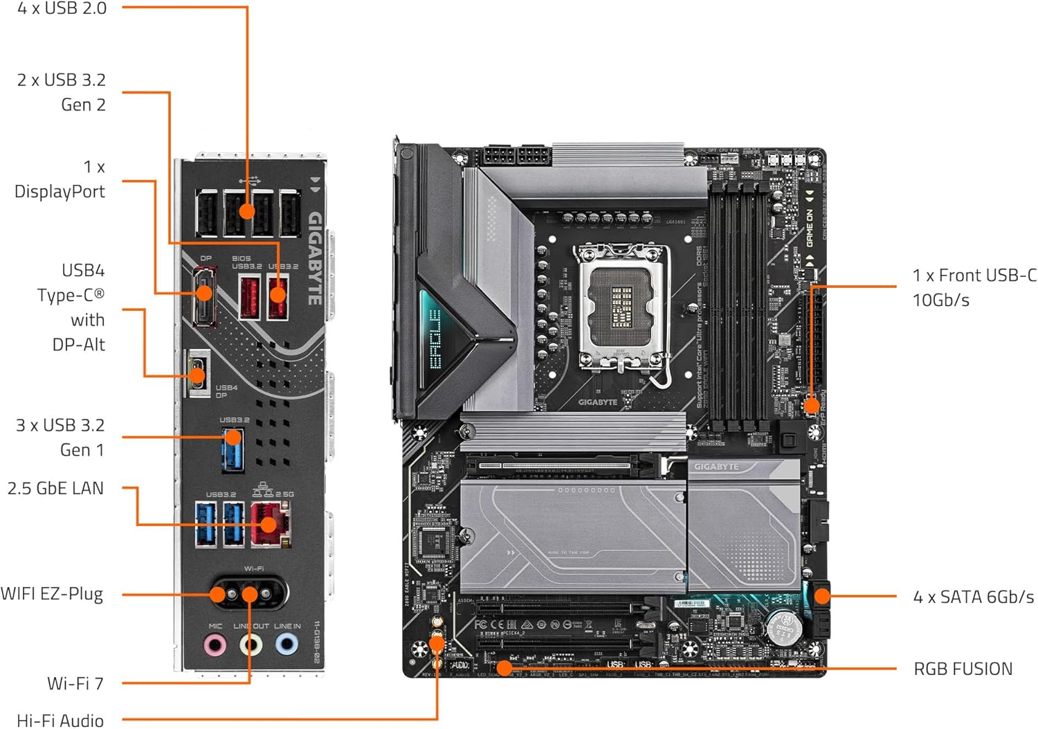 GIGABYTE Z890 Eagle WIFI7 Intel Core Ultra (Series 2) LGA 1851 Motherboard, ATX, DDR5, 4X M.2, PCIe 5.0, USB4, WIFI7, 2.5GbE LAN, EZ-Latch