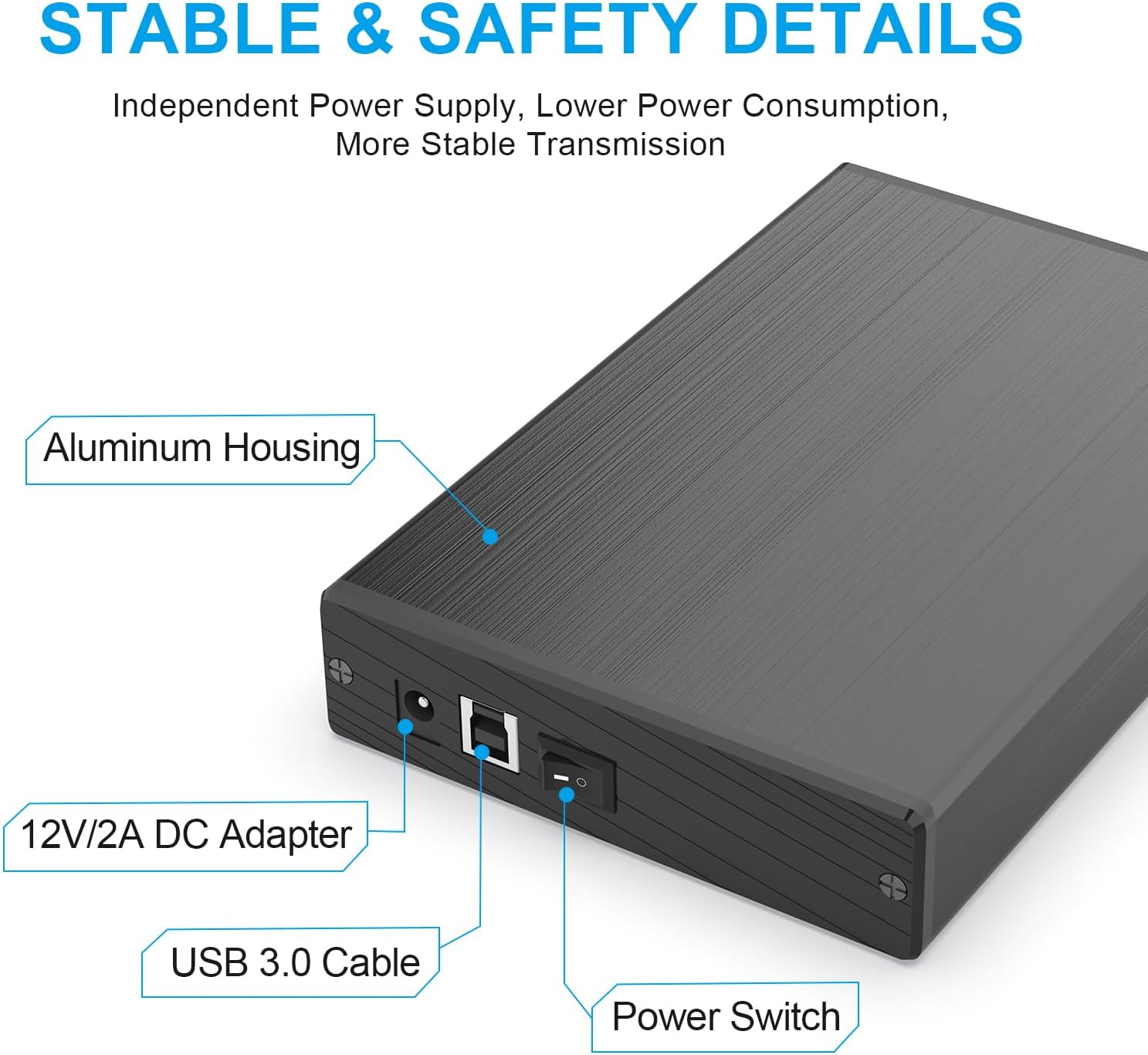 - 【Stable & Safety】The GODO external hard drive enclosure 3.5 inch with independent 12V/2A power supply using the advanced chip makes lower power consumption, more stable transmission, multiple protection for your SATA drives. integrated safeguards prevent over voltage, leak currents, short circuits and peak voltage, guaranteed safer data transfer and access hard drive.