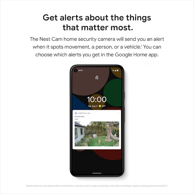 Get alerts about the things that matter most-The Nest Cam home security camera will send you an alert when it spots movement, a person, or a vehicle-You can choose which alerts you get
