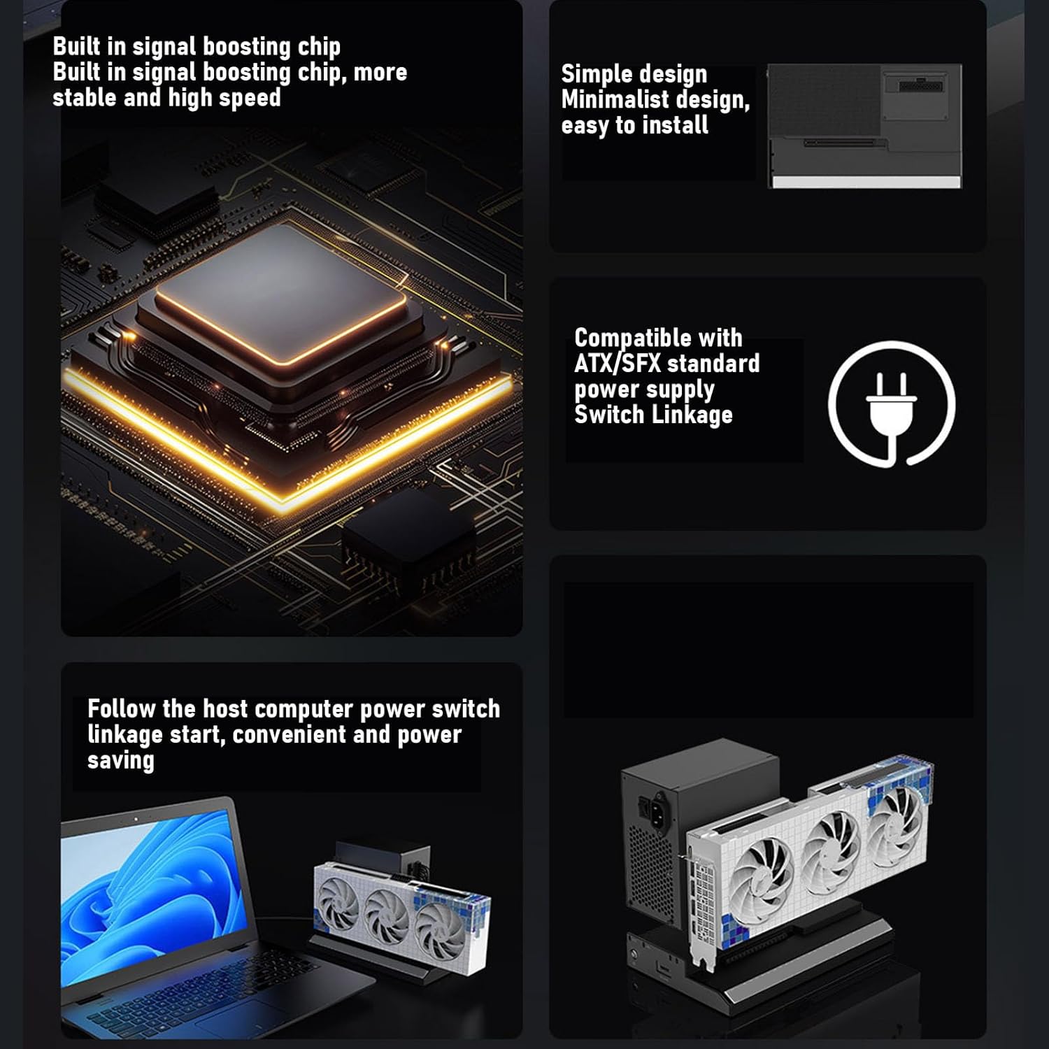 - Enhanced Gaming Performance: The GPU dock station, compatible with laptops or PCs featuring an interface for Oculink, allows users to performance by connecting an external GPU, transforming your portable device into a gaming powerhouse.