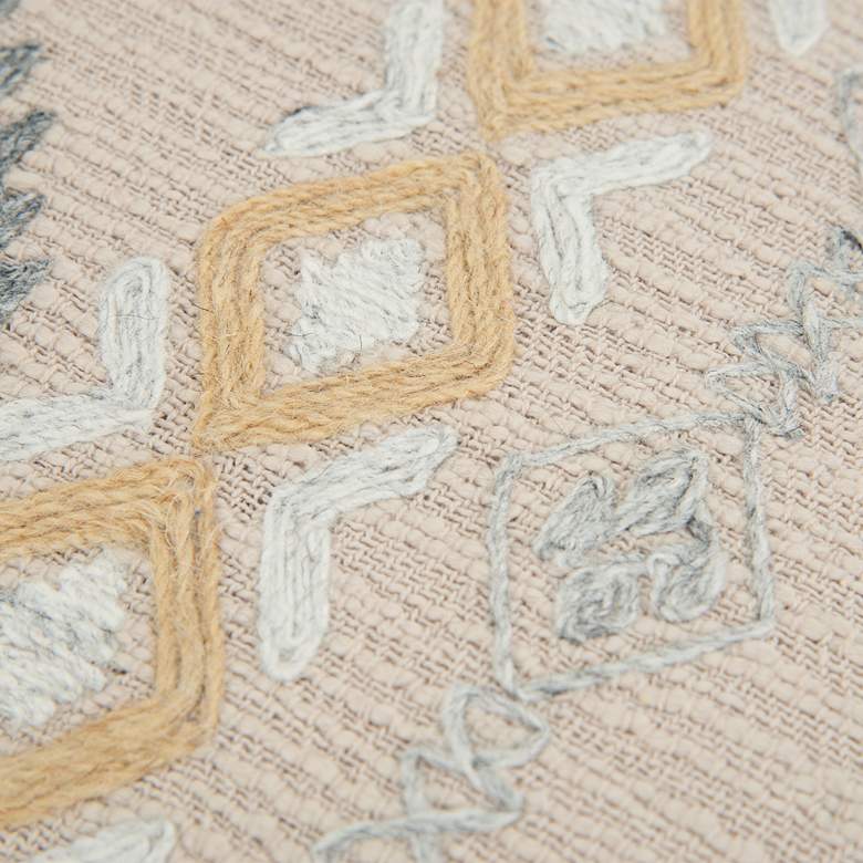 - Gray and brown geometric embroidered pattern. Beige solid cotton back.