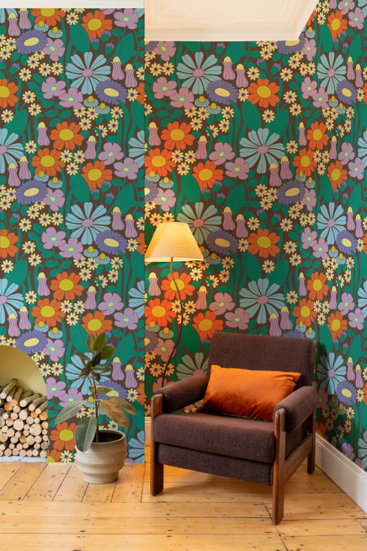 Repeat pattern wallpaper is the traditional style wallpaper as we’ve always known it. A repeat design that is printed onto rolls, and the number of rolls is determined by the size of the surface that you’re covering.