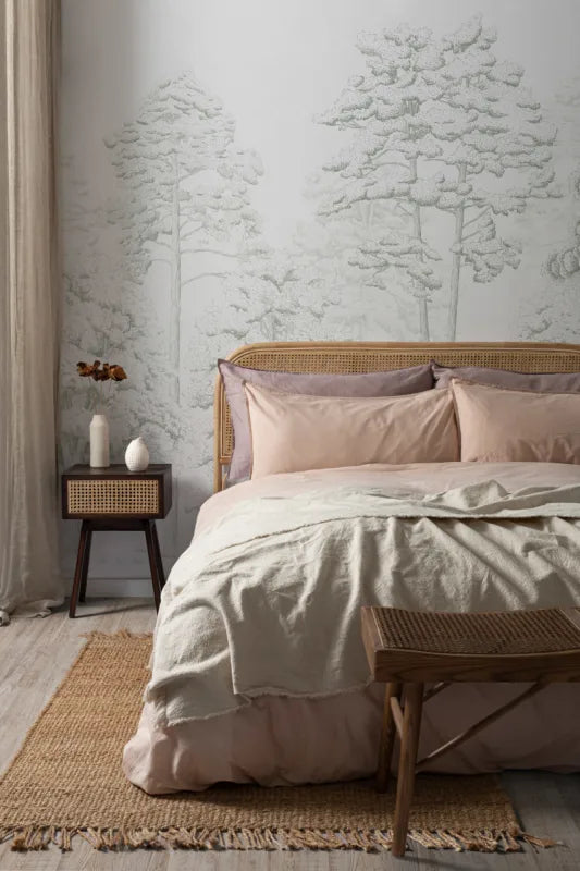 Repeat pattern wallpaper is the traditional style wallpaper as we’ve always known it. A repeat design that is printed onto rolls, and the number of rolls is determined by the size of the surface that you’re covering.