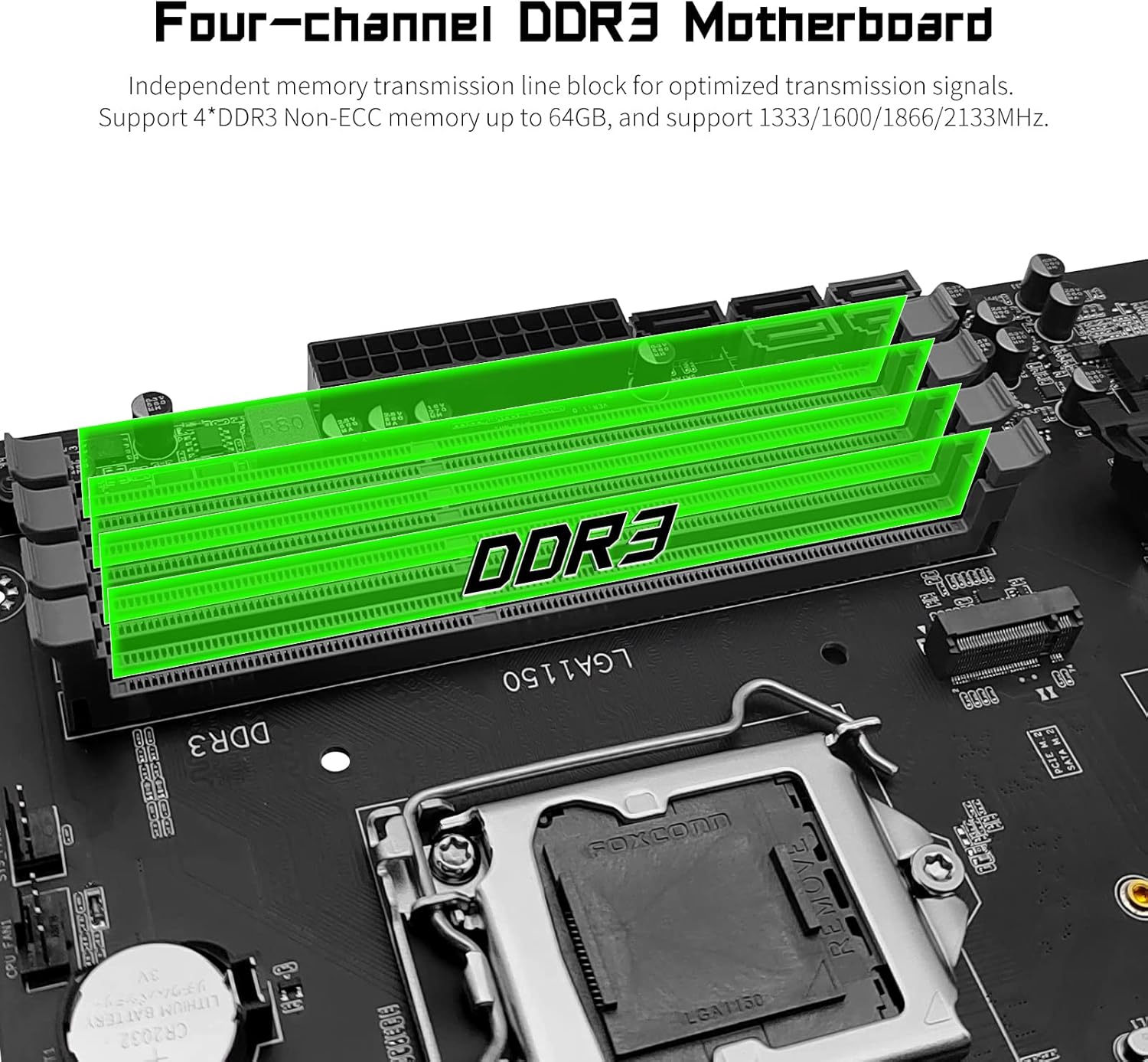 - Maximum Memory 32GB: The Intel m-atx motherboard supports Dual Channel Non-ECC DDR3, 4 DIMMs, support 1333/1600/1866/2133MHz
