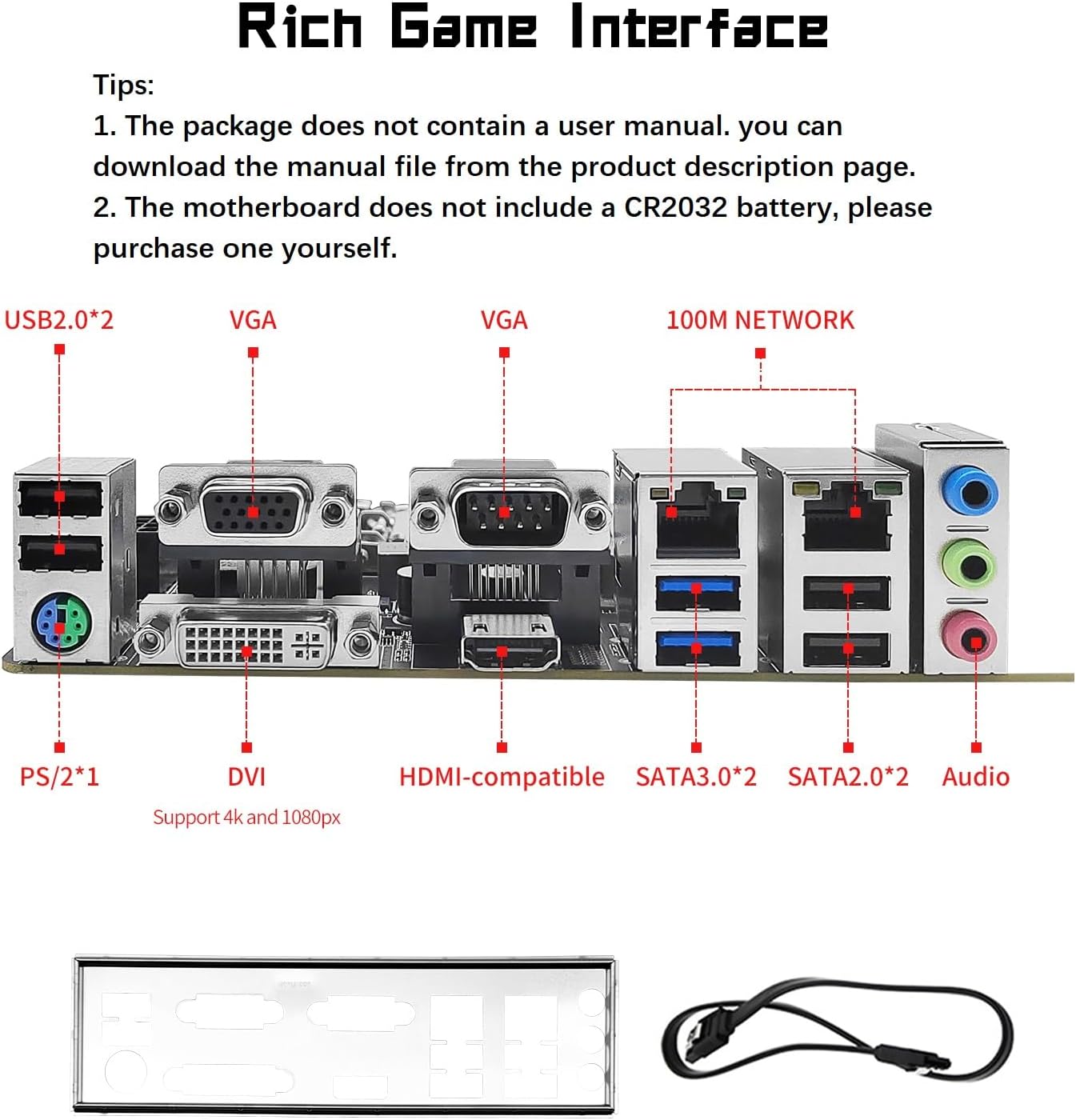 - Stable Power Supply: 4-phase power supply, all-solid-state capacitor design, fine workmanship, professional stability. And the computer motherboard placa madre is equipped with 24+8 pin power interface (at least 500w brand power supply)