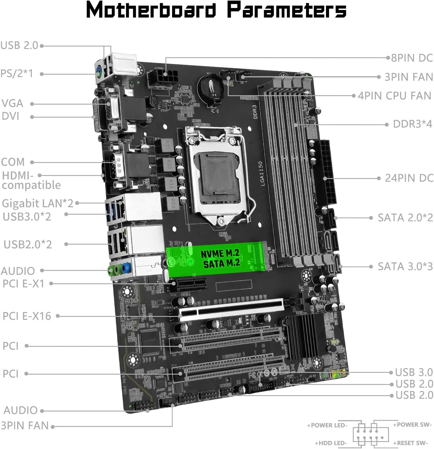 - Best Gaming Connectivity: The Intel LGA 1150 motherboard for Intel i3 i5 i7 supports HDMI-compatible and DVI, VGA, featuring M. 2 slots (NVMe SSD), PCIe 3.0 X16, USB 3.0, SATA 3.0, and 2 gigabit network interfaces, bringing an extremely fast and smooth online gaming network