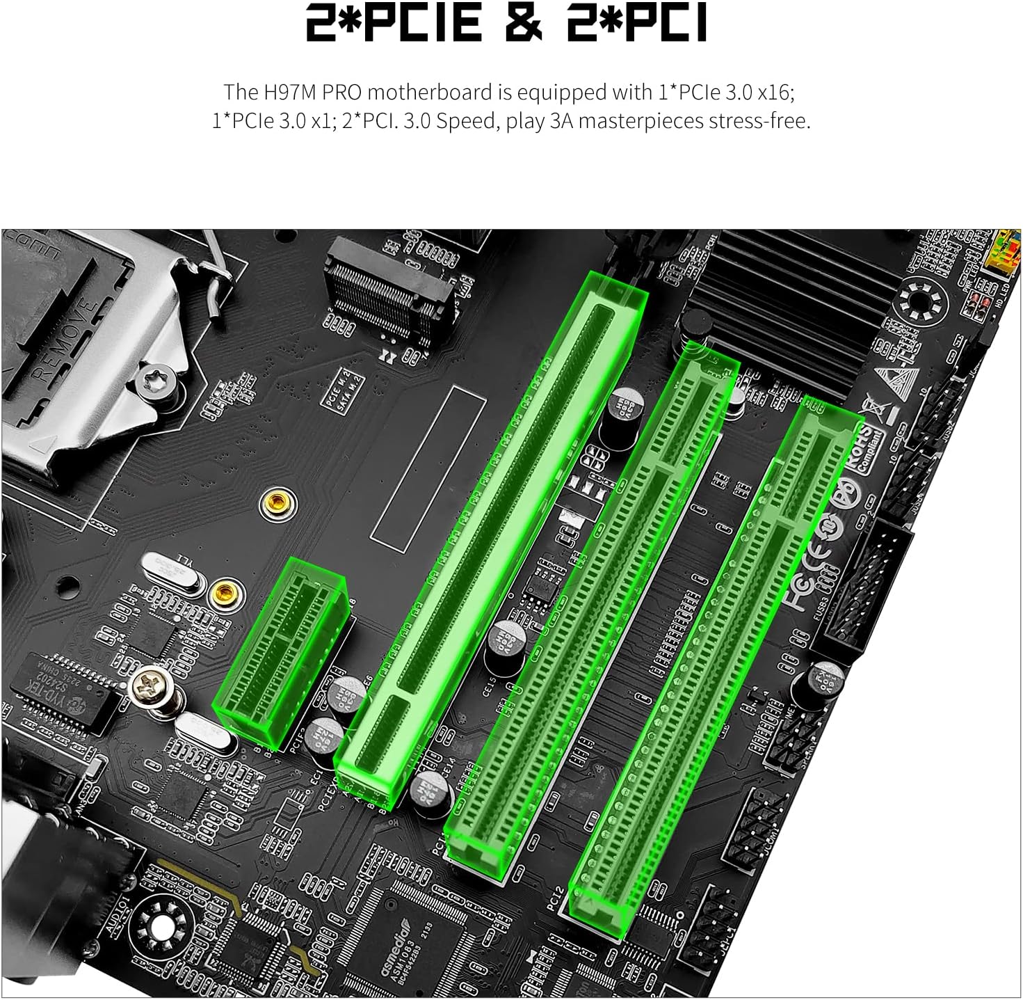 H97M PRO LGA 1150 Motherboard for Intel 4th 5th gen Core i3 i5 i7/Pentium/Xeon Processor (Micro ATX, 4*DDR3 Slots, SATA 3.0, USB 3.0, NVME M.2, PCIe 3.0)