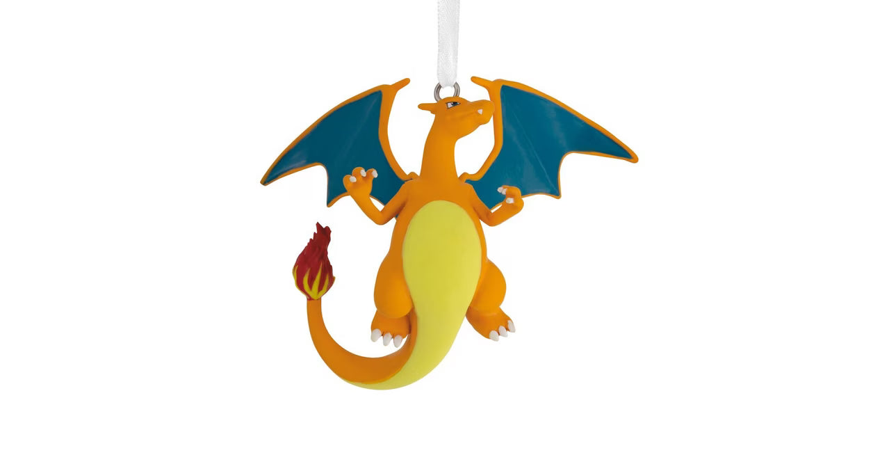 - Bring the heat with this Charizard Hallmark Christmas ornament. Fans and trainers will love the Pokémon anime fire dragon's extended wings and fire tail.