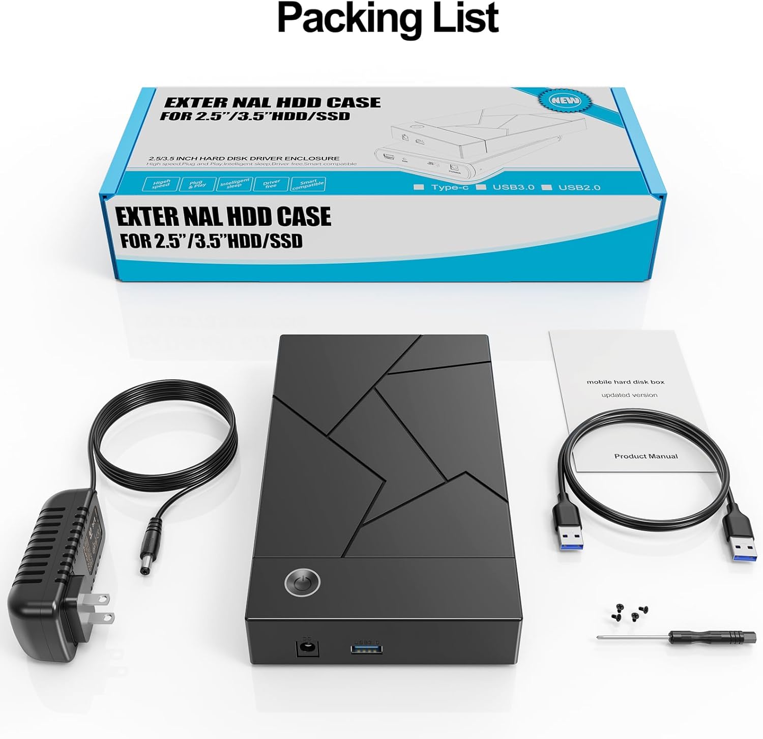 - 【What You Get】USB 3.0 to 3.5 HDD Enclosure x1, (12V/2A DC power adapter x1, USB 3.0 data cable x1, User manual x1, Screwdriver x1, Screw x4.) Please confirm your hard drive type before purchasing. All our products provide 24-hour after-sales service and 12-month warranty service, if you have any suggestions, welcome to contact us.
