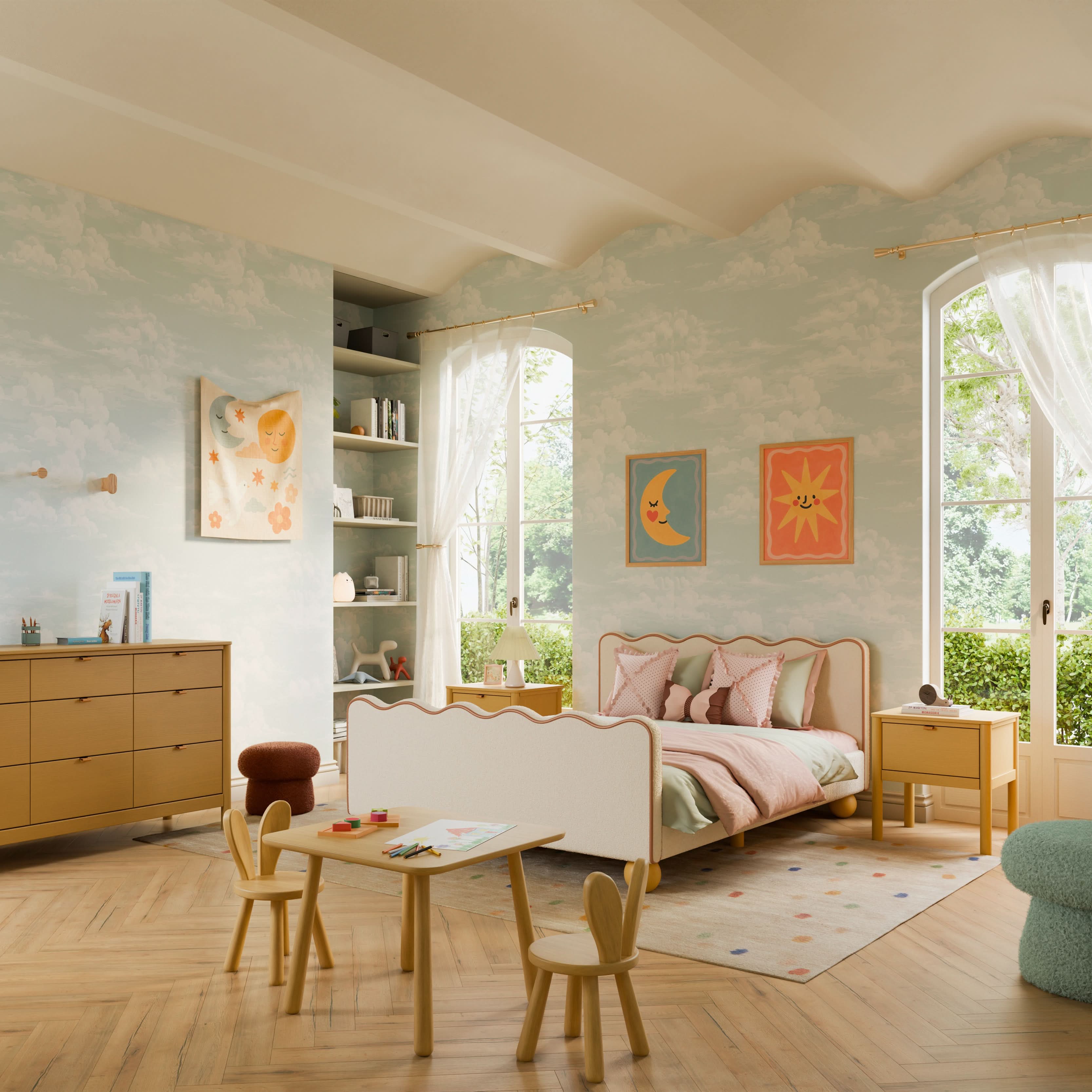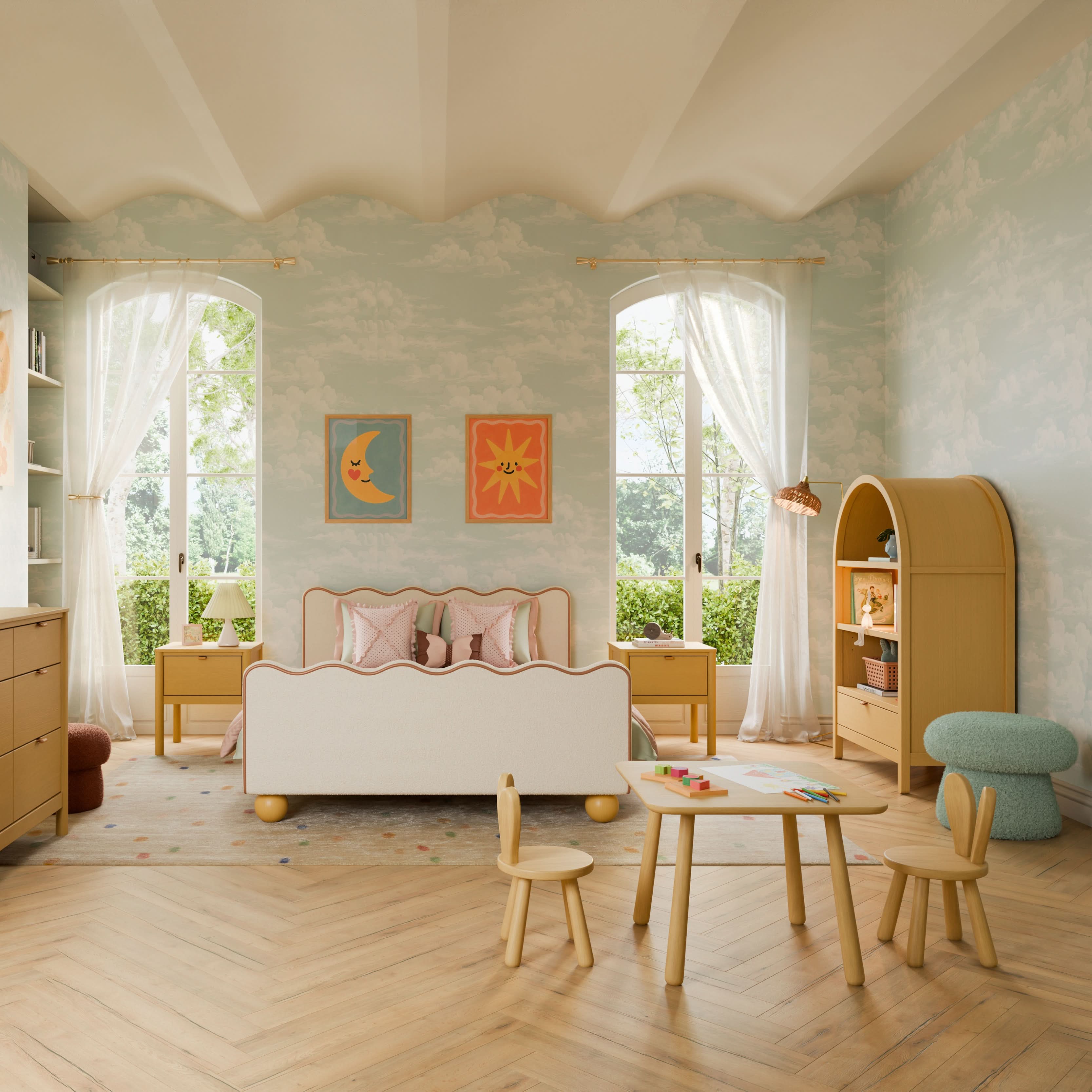Bring a pop of play to your space with the Hoppy Play Table & Chair Set. Designed with clean lines and a modern silhouette, this kid-sized set includes a table and two bunny-inspired kids chairs made just right for coloring outside the lines, building block towers, or hosting tiny tea parties. Crafted with durable materials and a soft, neutral finish, the Hoppy Play Table blends seamlessly into your home (because playroom pieces shouldn’t have to clash with your style).