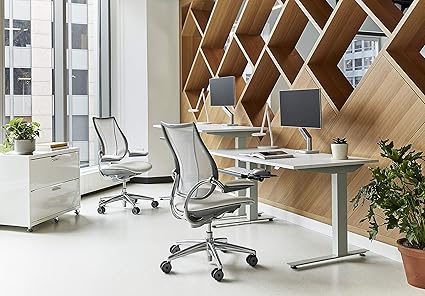 Humanscale M2.1 Monitor Arm | 2 Piece Clamp Mount with Base | Angled Link/Dynamic Link | Standard Monitor Tilt | Standard Black Vesa Bracket 100mm x 100mm (Black with Black Trim)
