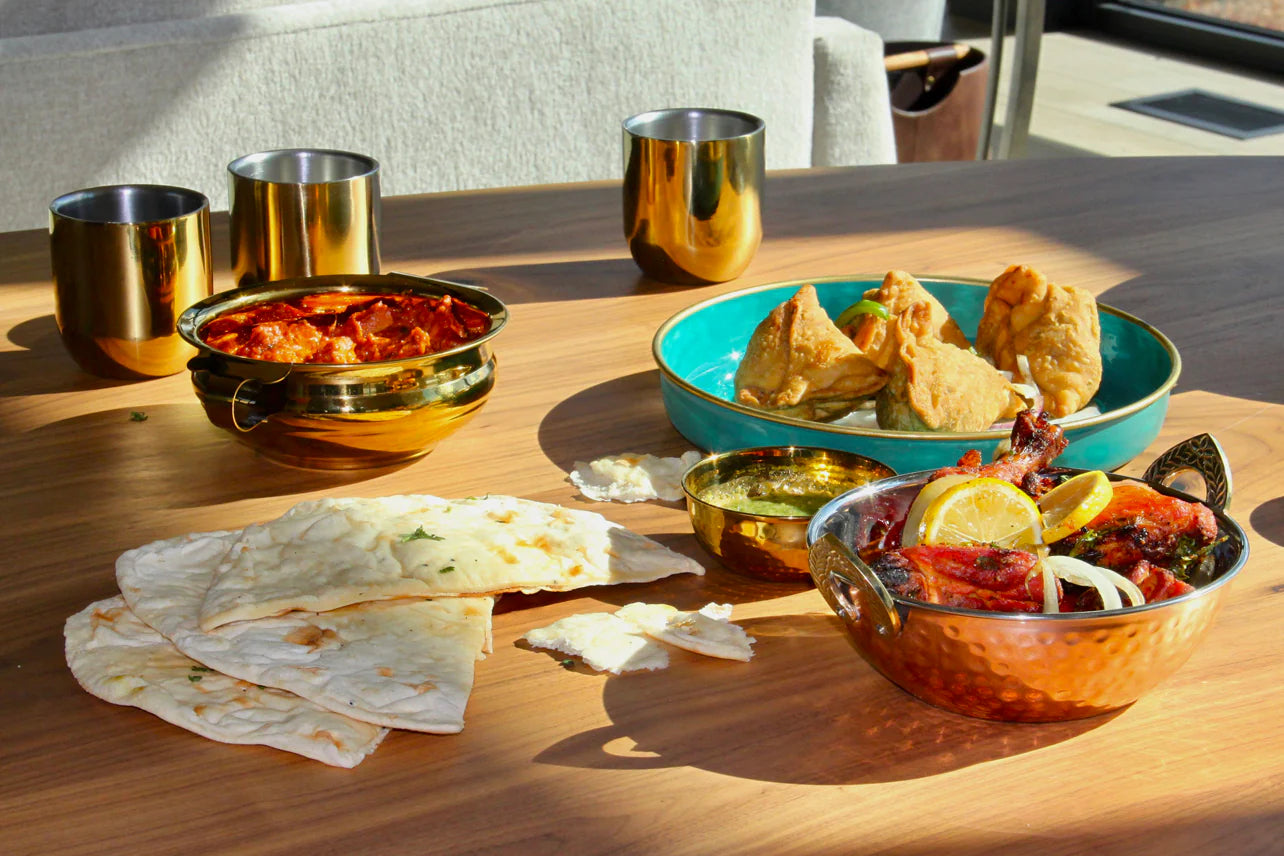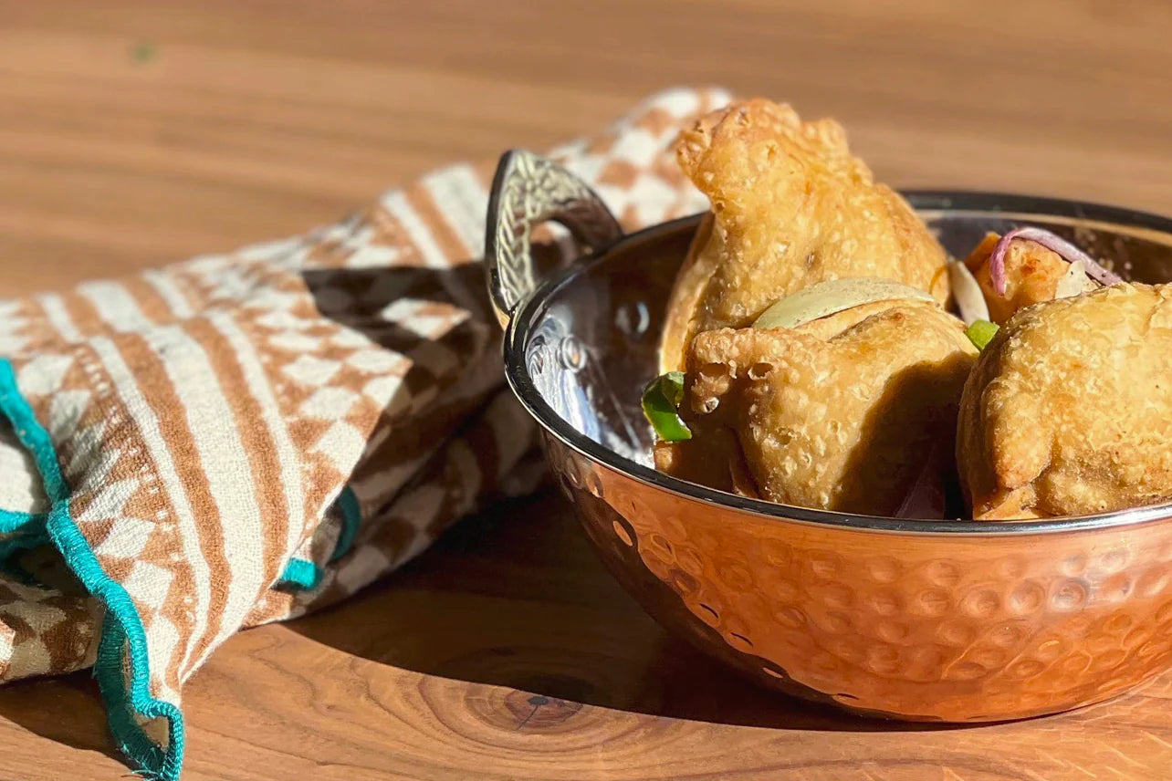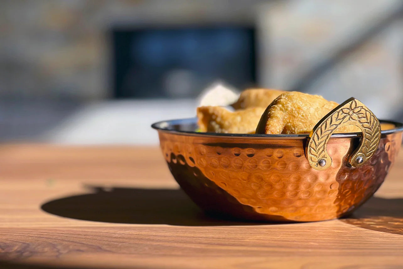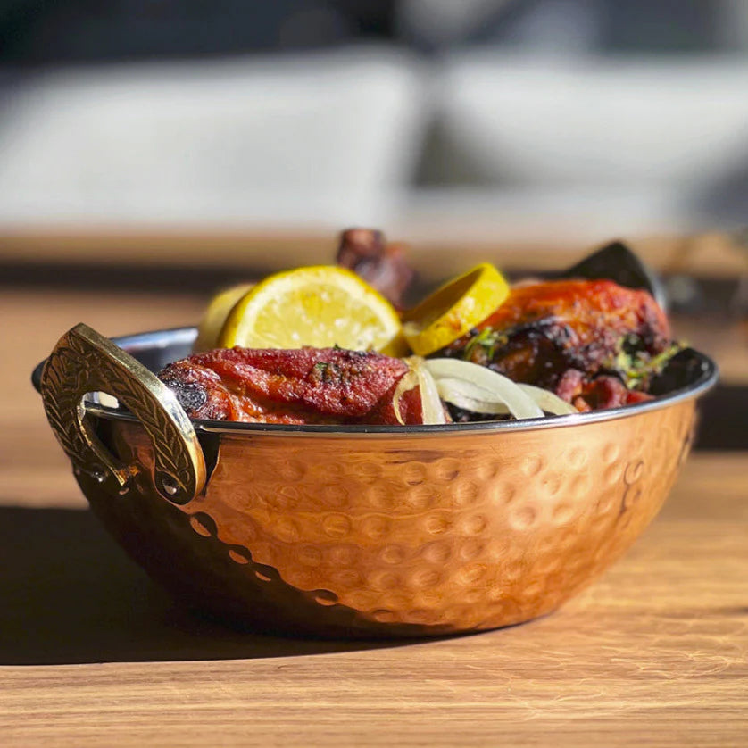Indian Handi Serving Bowl - Hammered Copper Double Walled