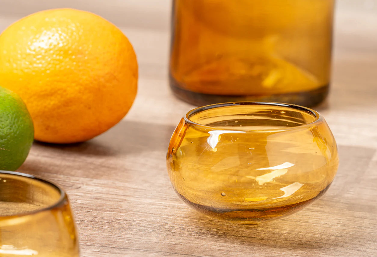 Traditionally, a mezcal tasting cup is a jicaras, or small cup made from the bark of the jicara fruit. The wide mouth of a jicara cup allows the alcohol to evaporate, leaving room for the full expression of the mezcal.