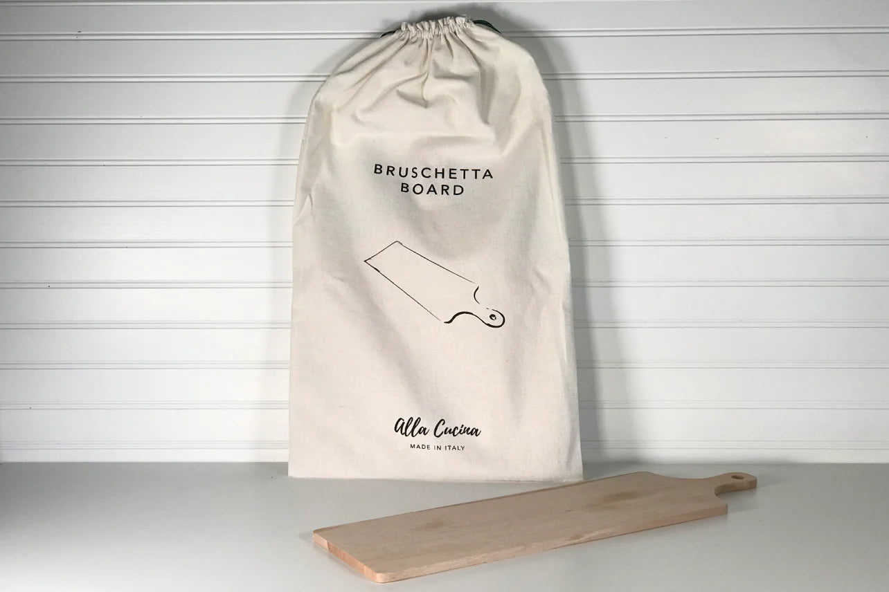 This long beechwood serving board is the perfect way to serve and display not only bruschetta, but also appetizers, antipasti, and charcuterie.