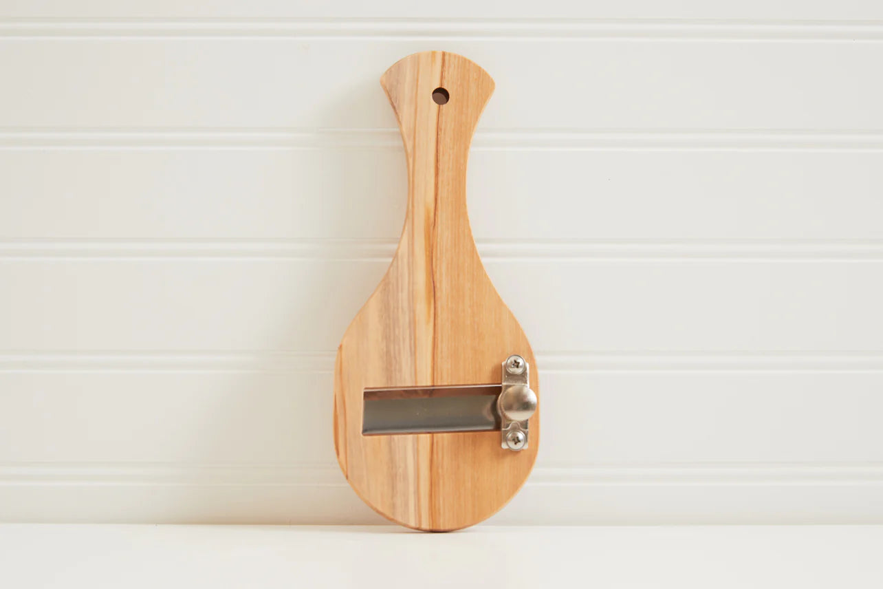 Artisan-made in Italy, our precision, stainless-steel olivewood truffle slicer has an adjustable blade that slices truffles into thin, aromatic curls. Perfect for adding a *chef's kiss* garnish to anything from risotto to polenta to pasta. The plane of this paddle-like device is designed for producing paper-thin slices of truffles. In addition to truffles, this slicer can be used for vegetables, cheese and more - wherever fine slices are necessary.
