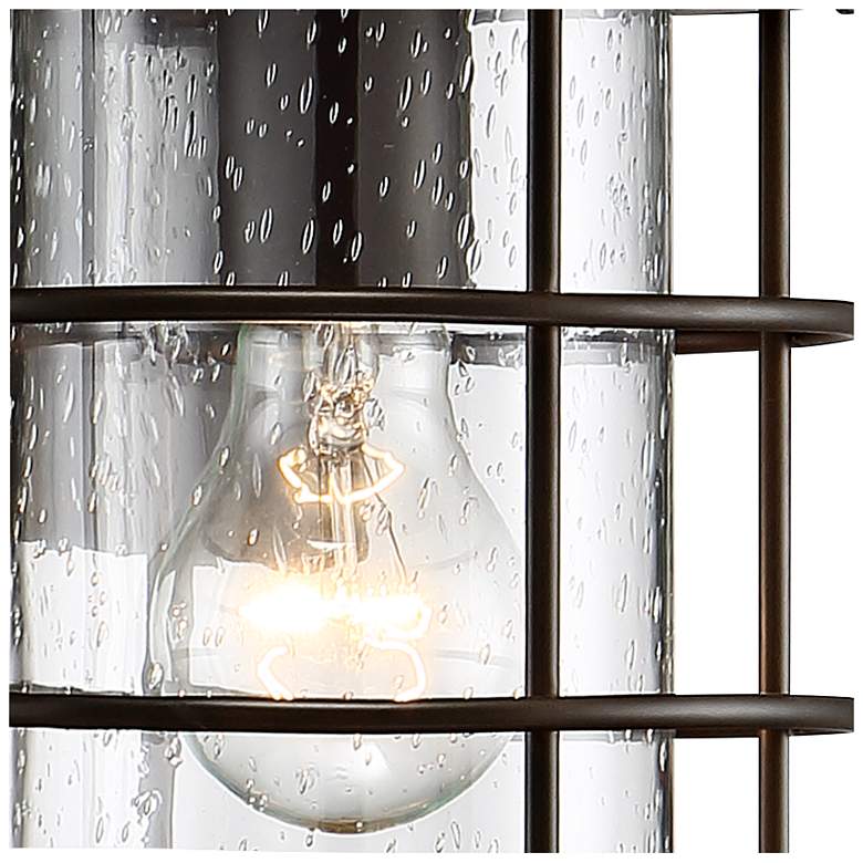 - Oil-rubbed bronze finish over steel construction. Seeded glass. Wet location rated for outdoor use.