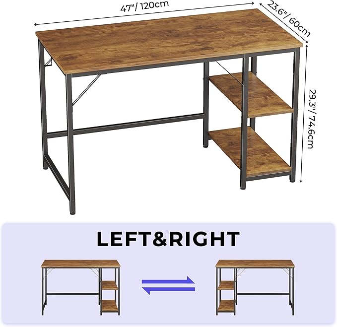 - 【Reversible Storage Shelf】 This gaming desk has a removable storage shelf that can be installed on the left or right side at will, offering a double-sided open storage shelf design that makes your items easy to reach and organise.