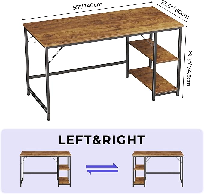 - 【Reversible Storage Shelf】 This gaming desk has a removable storage shelf that can be installed on the left or right side at will, offering a double-sided open storage shelf design that makes your items easy to reach and organise.