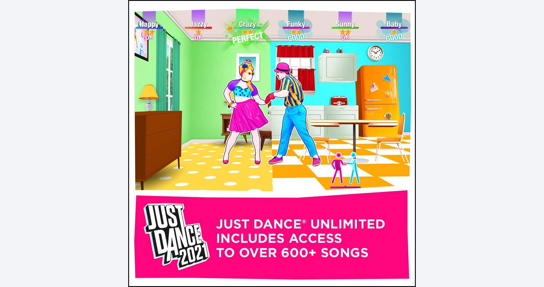 - Dance to over 600 songs with the Just Dance Unlimited subscription streaming service. One month FREE included with the game!
