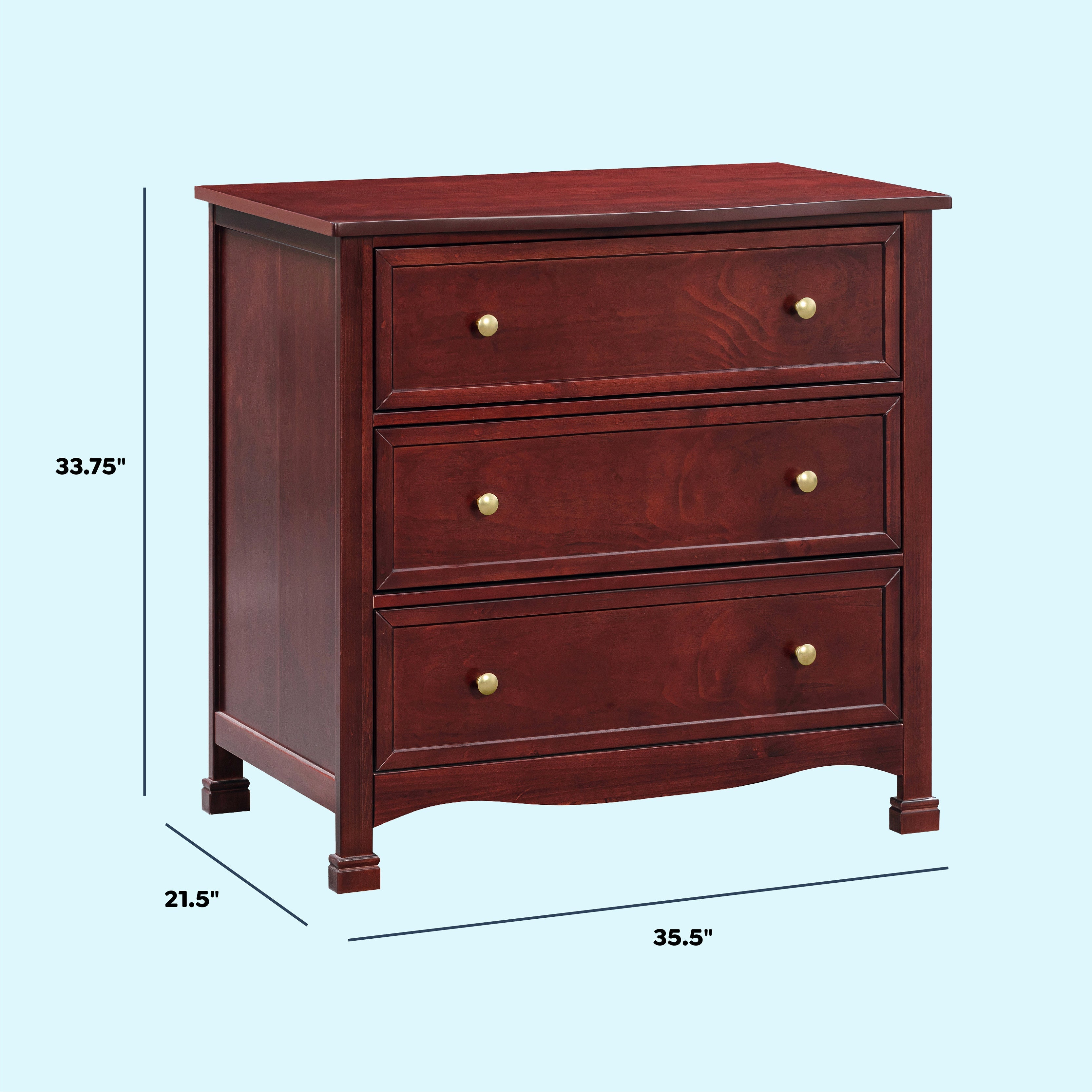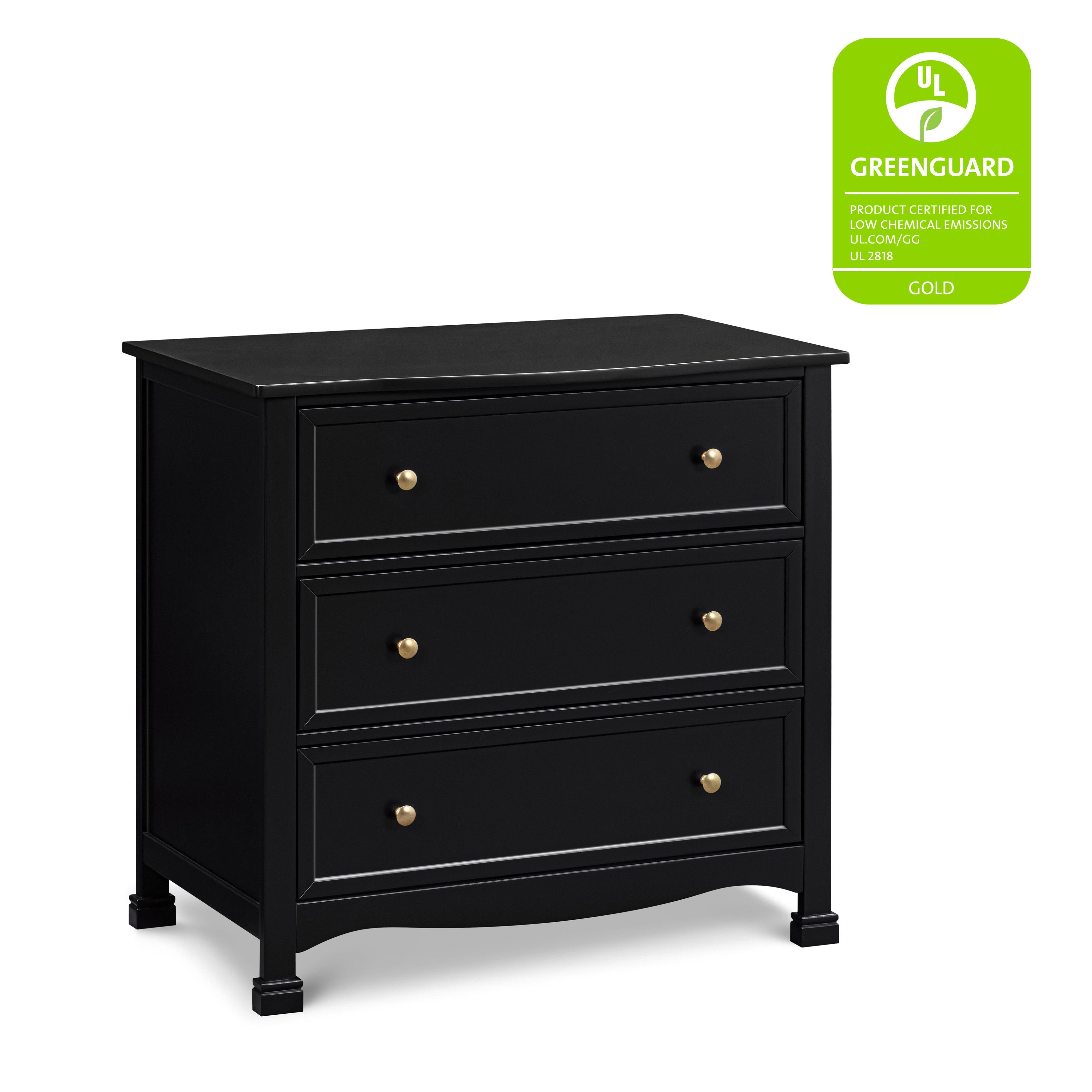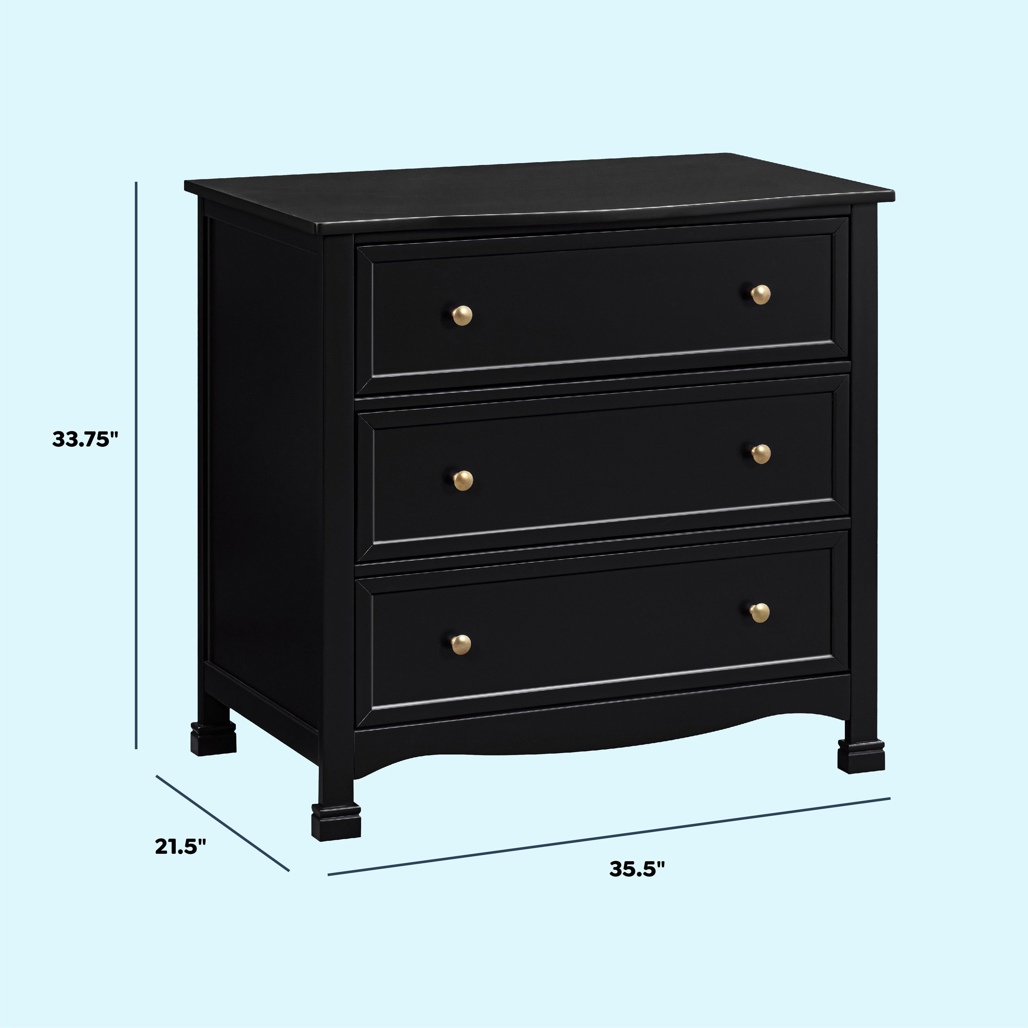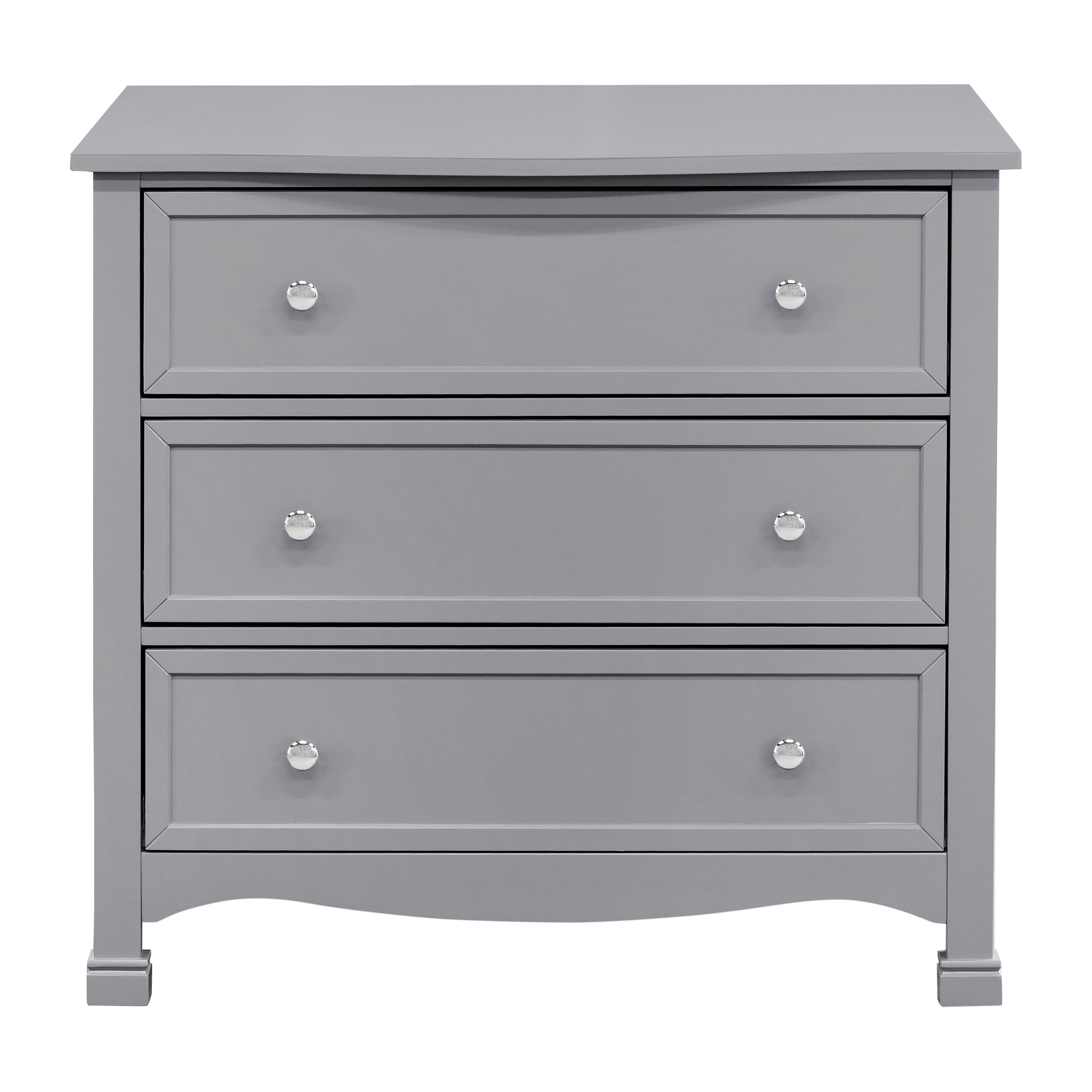 The Kalani 3 Drawer Dresser is the smart changing and storage solution for the classic Kalani collection. Three roomy drawers provide ample storage to simplify organization while thoughtful design ensures a style fit for any nursery. The dresser is detailed with recessed front drawer panels, a gently curved apron front and curved top sides.