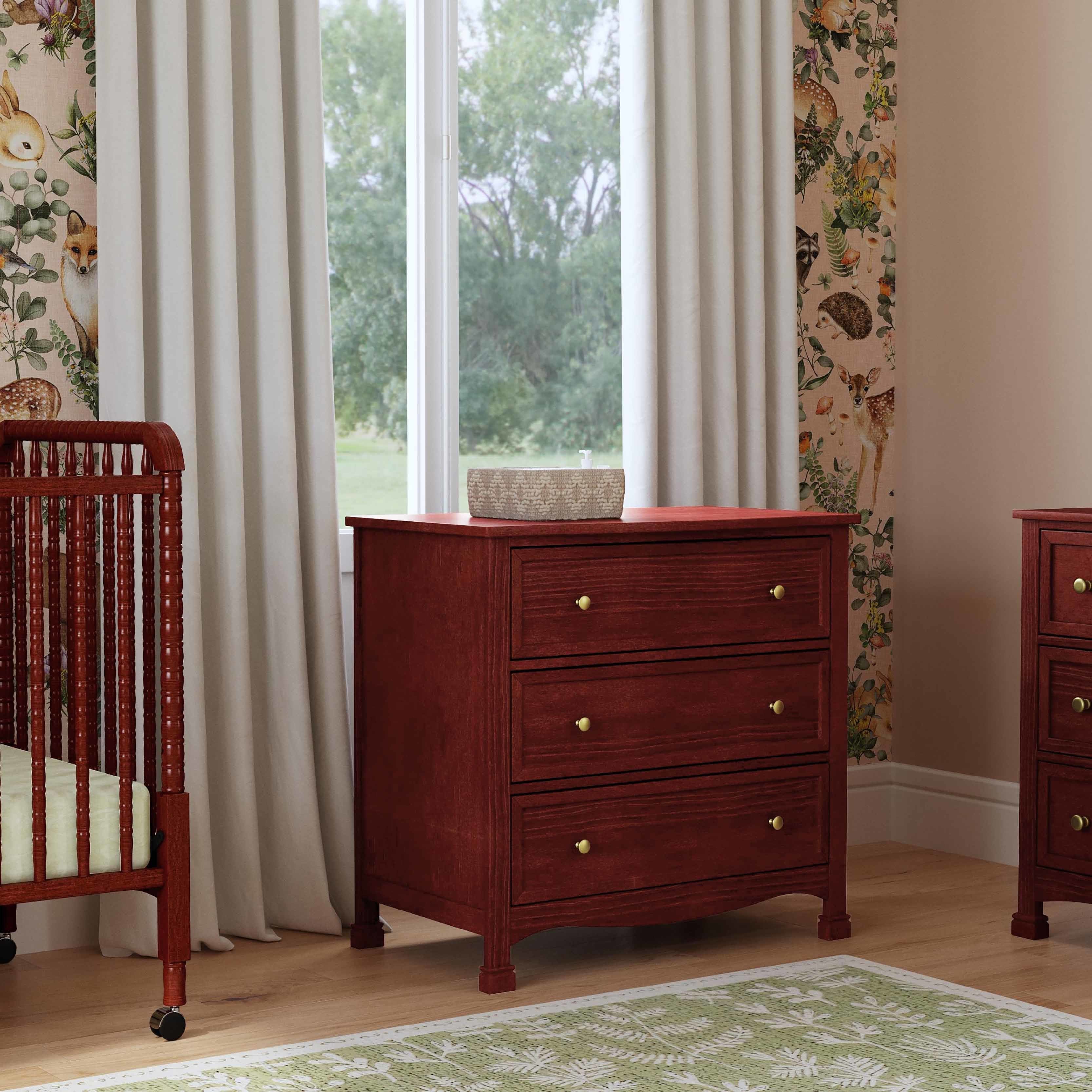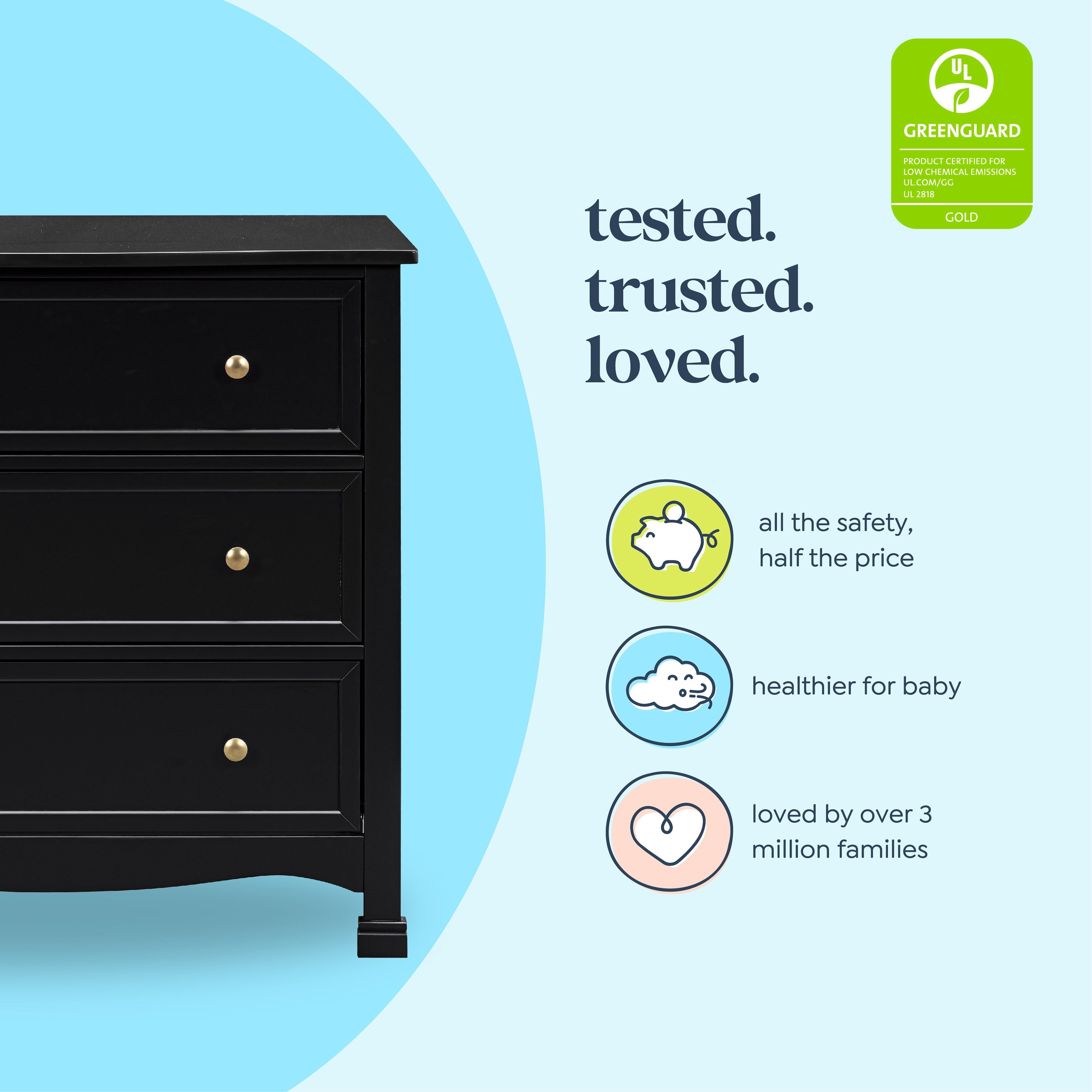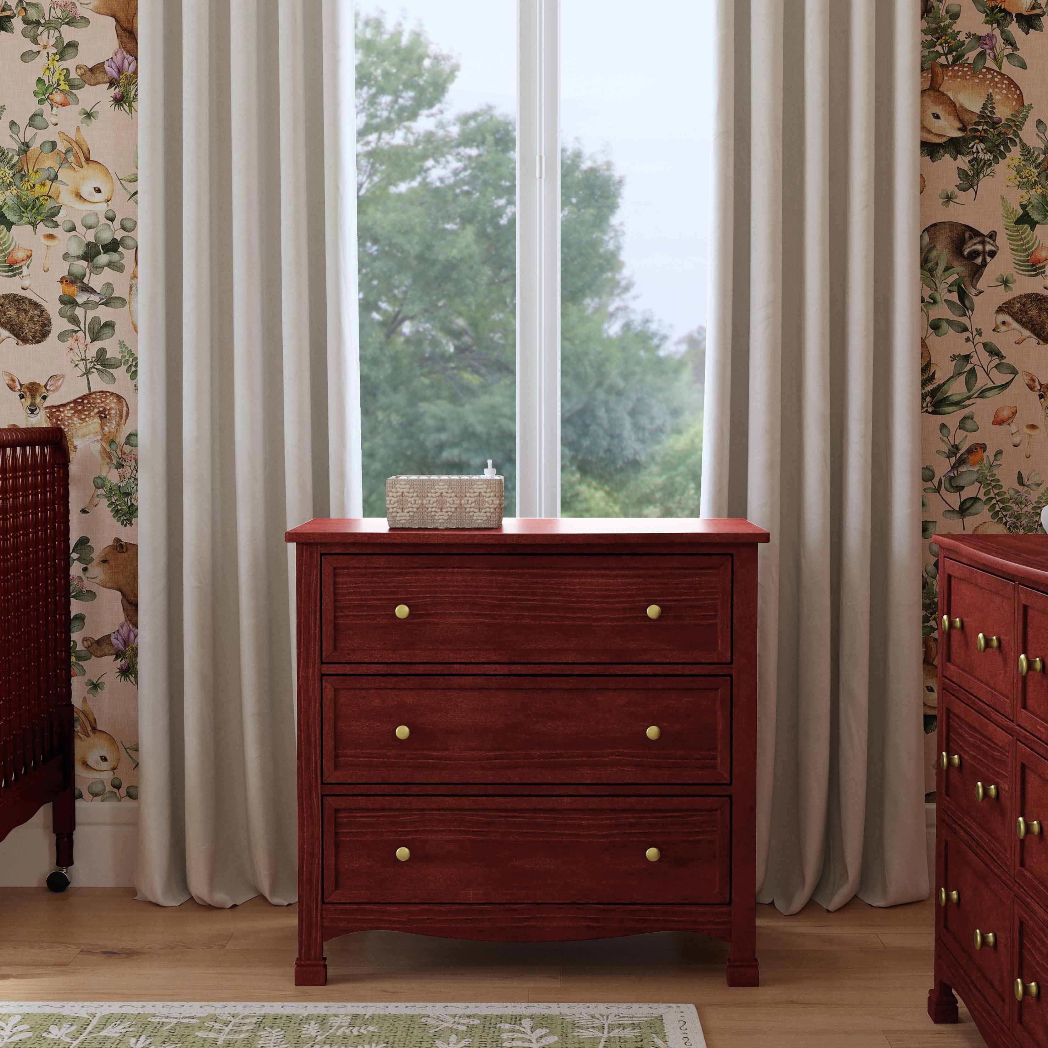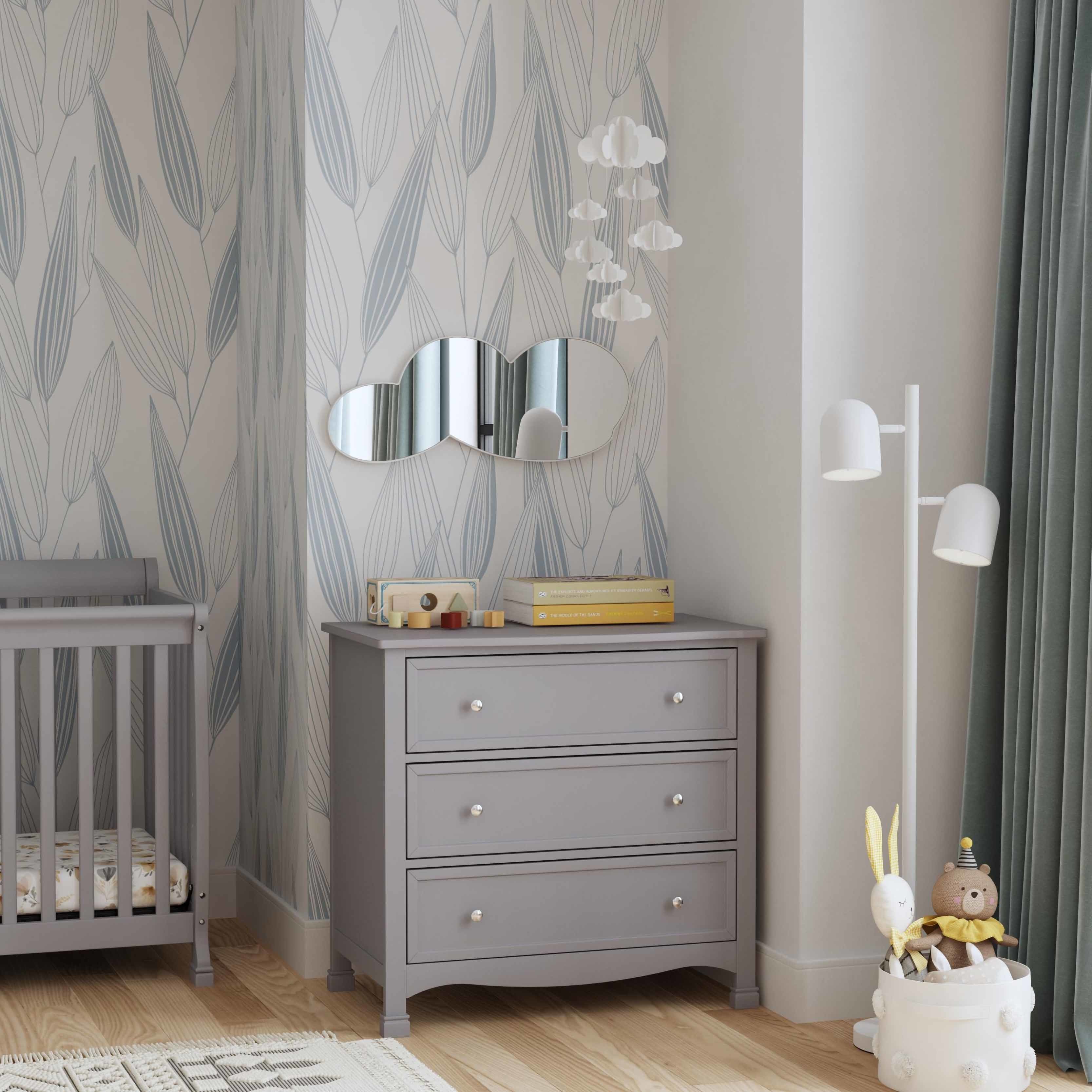 The Kalani 3 Drawer Dresser is the smart changing and storage solution for the classic Kalani collection. Three roomy drawers provide ample storage to simplify organization while thoughtful design ensures a style fit for any nursery. The dresser is detailed with recessed front drawer panels, a gently curved apron front and curved top sides.