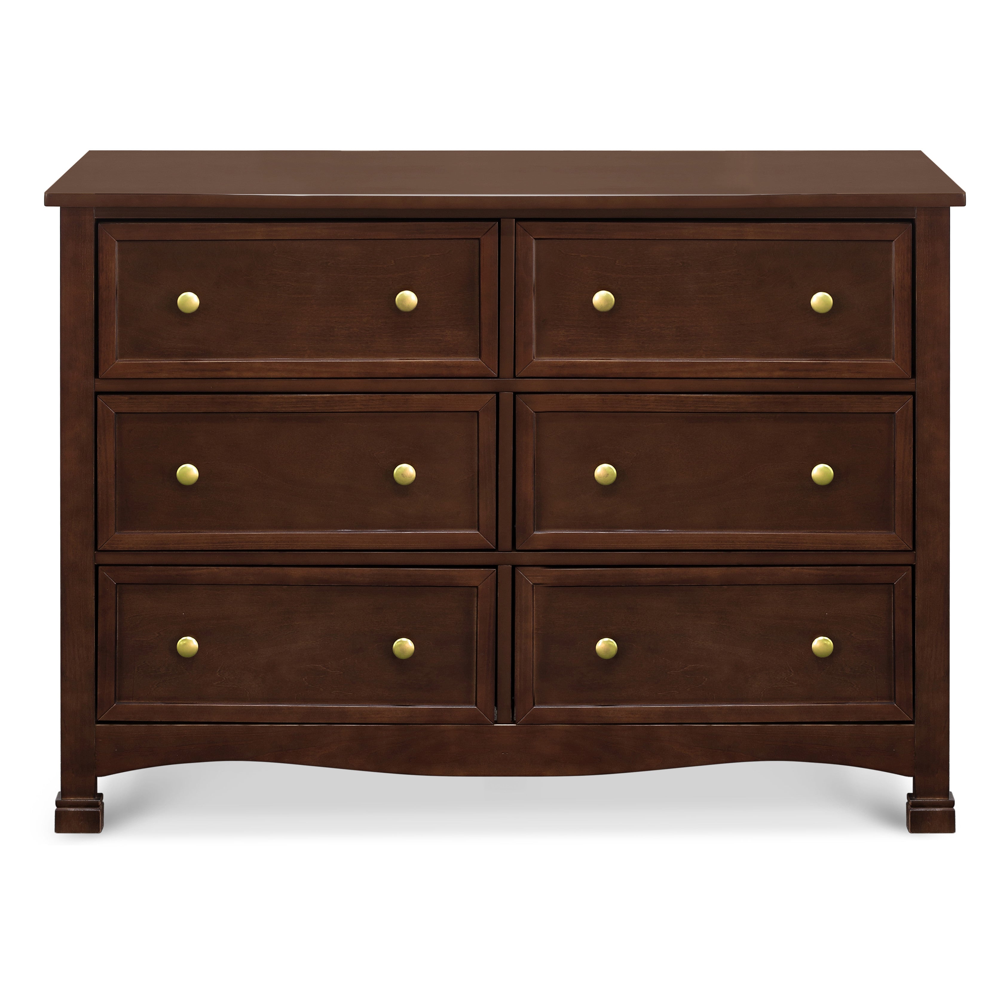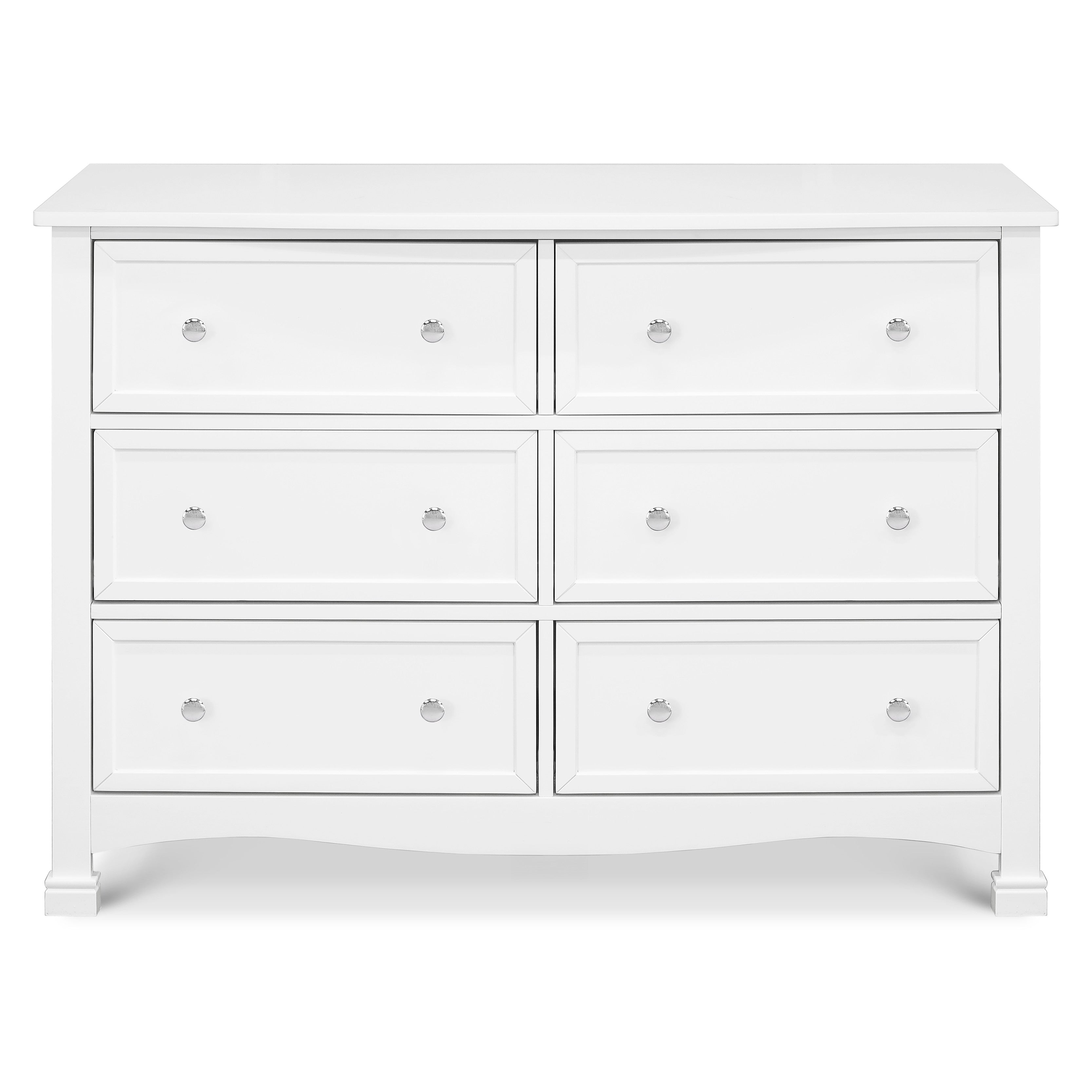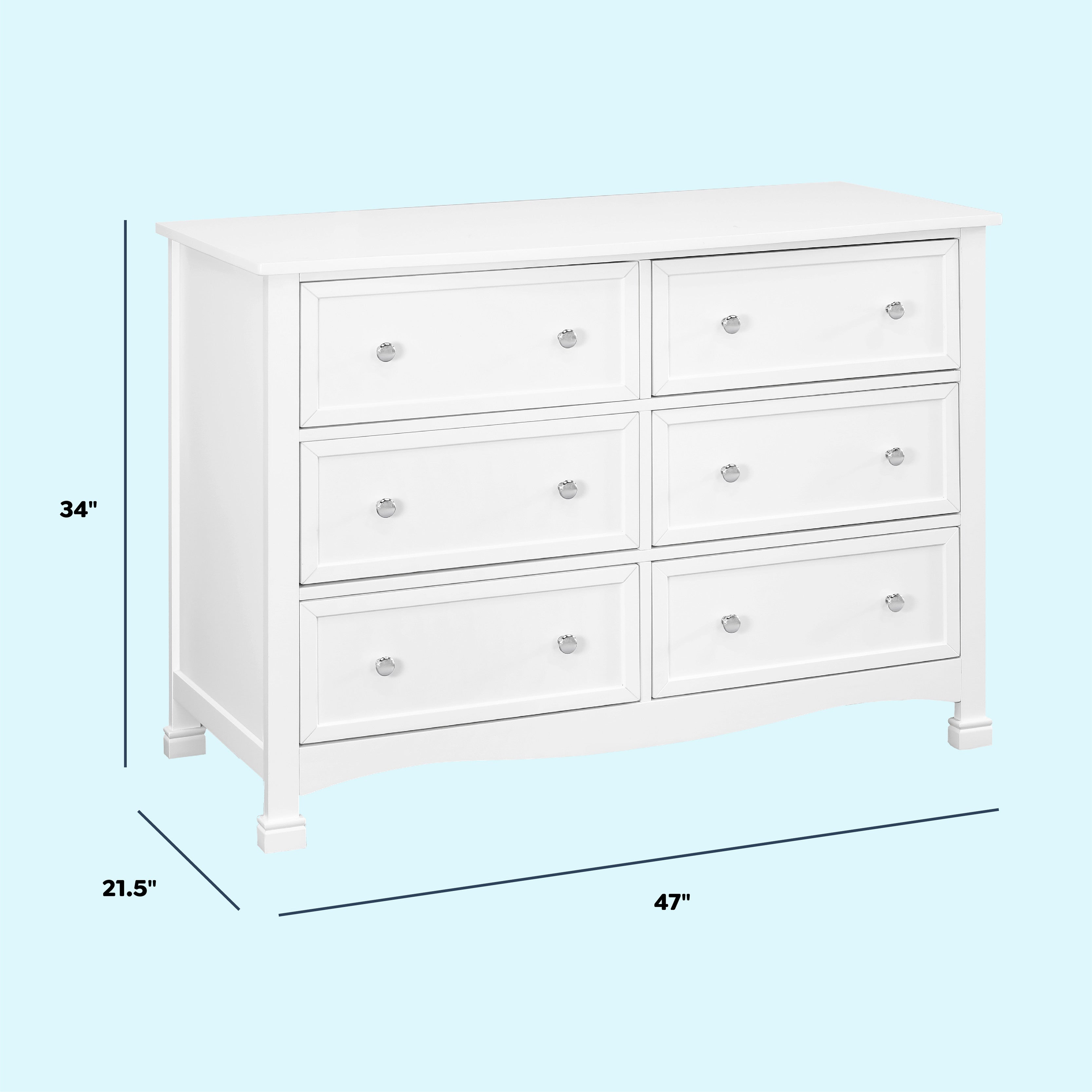 The Kalani 6-Drawer Dresser is the smart changing and storage solution for the classic Kalani, Emily and Fiona nursery collections. Six spacious drawers provide ample storage to organize all of baby’s necessities, while its thoughtful design ensures a style fit for any nursery or bedroom. The Kalani Double Dresser is detailed with recessed front drawer panels, a gently curved apron front and curved top sides.