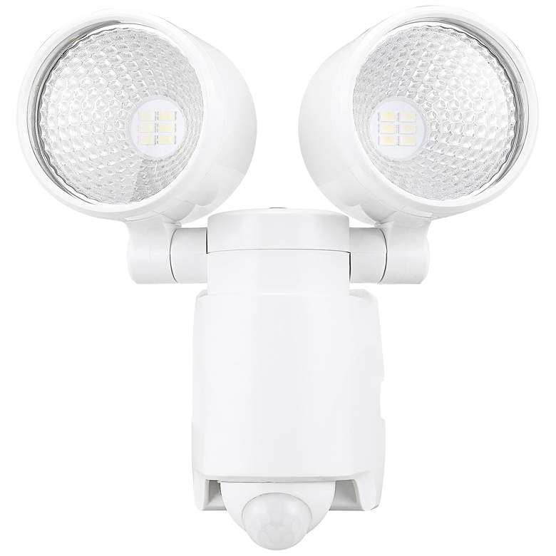 This dual-head solar energy-efficient LED motion sensor security flood light adds versatility and personality to complement any home's exterior. The aluminum housing remains strong and valuable for any setting. With a built-in motion sensor, this light works as a security device to brighten your property whenever it senses motion nearby.