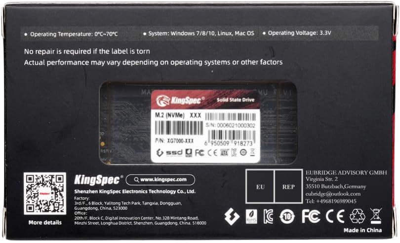 - Quality Assurance: Every KingSpec SSD undergoes 100+ stringent quality inspections per unit to ensure unwavering reliability; Supported by a 3-Year Warranty and Lifetime Technical Support; Fully certified in-house manufacturing guarantees uncompromised performance consistency