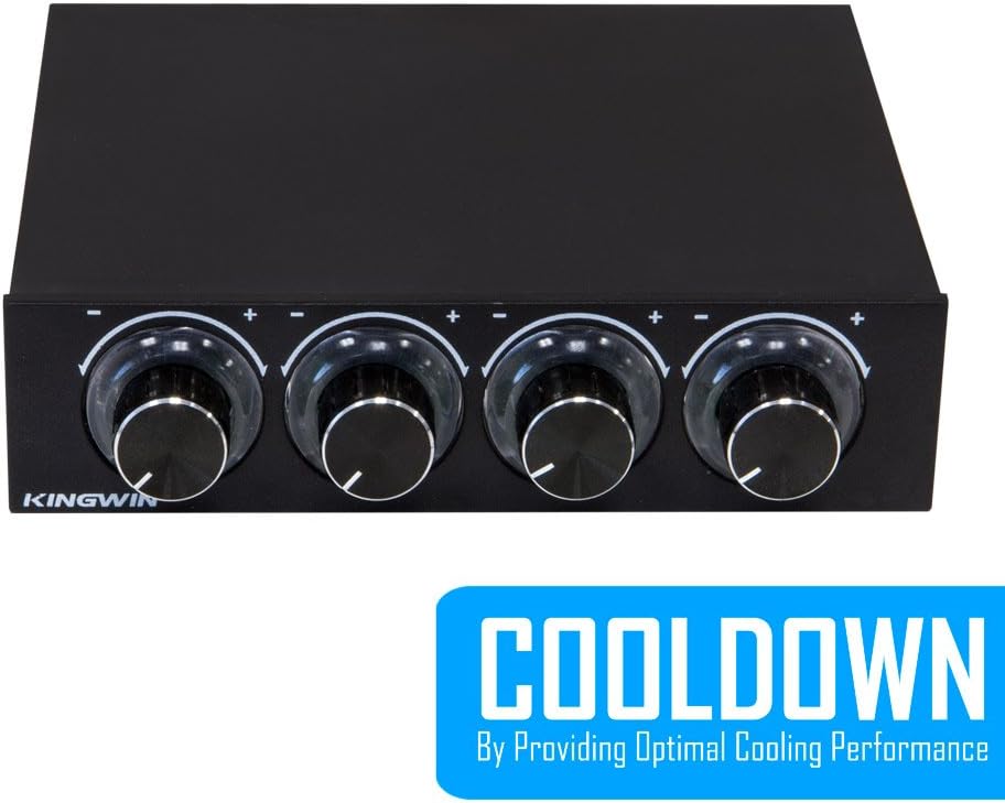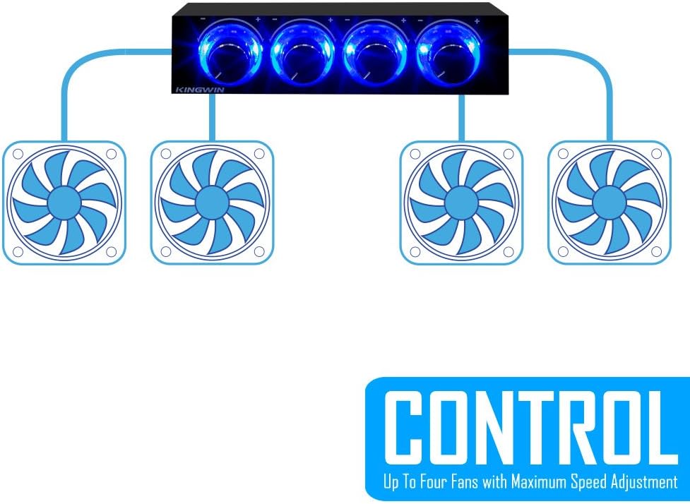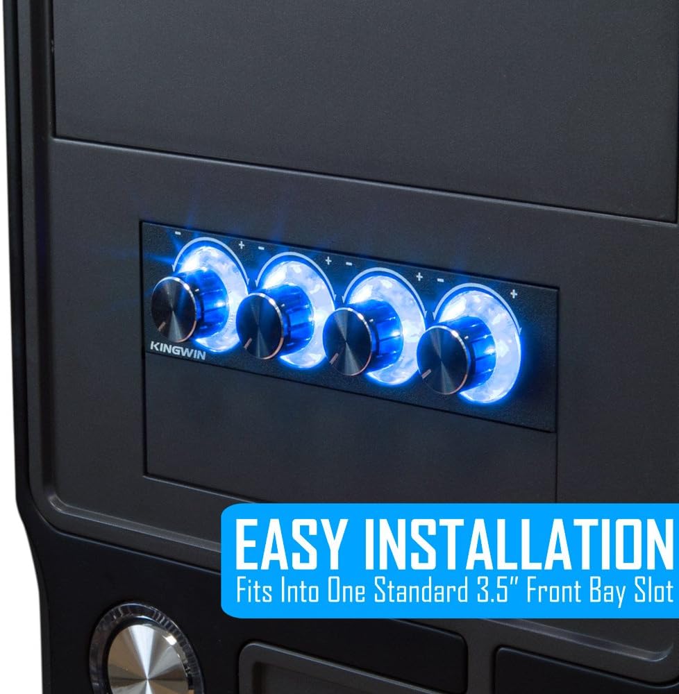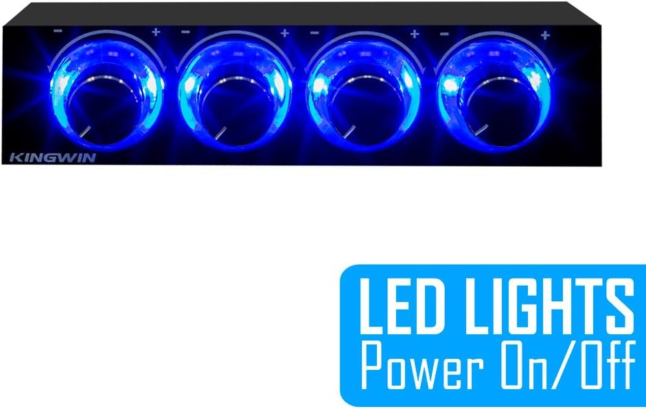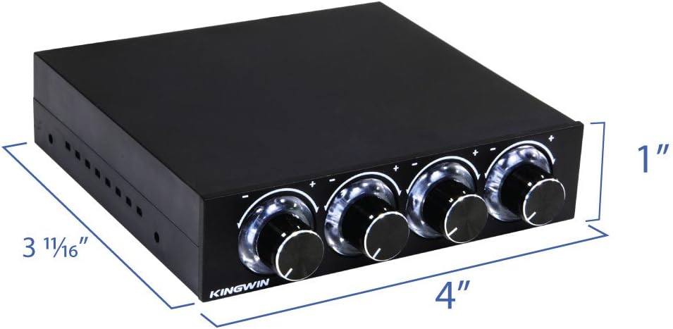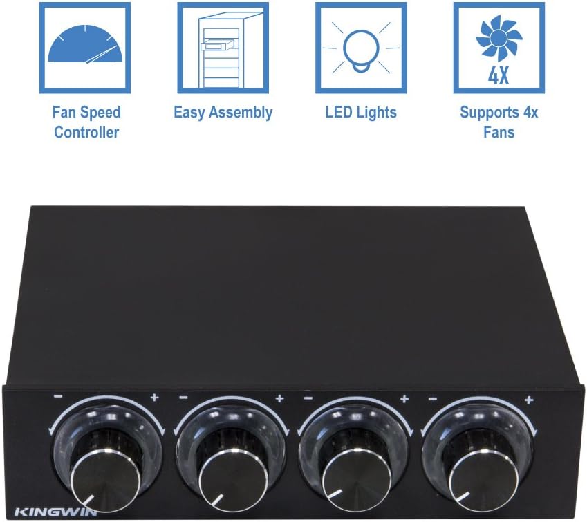 Kingwin Fan Controller 4 Channel w/ LED. Controls up to 4 Sets of PC Computer Fans, Independent Turn Knob Control, and Fits 3.5 Inch Drive Bay. Easy Setup, and Easy Control of Your Cooling Fans