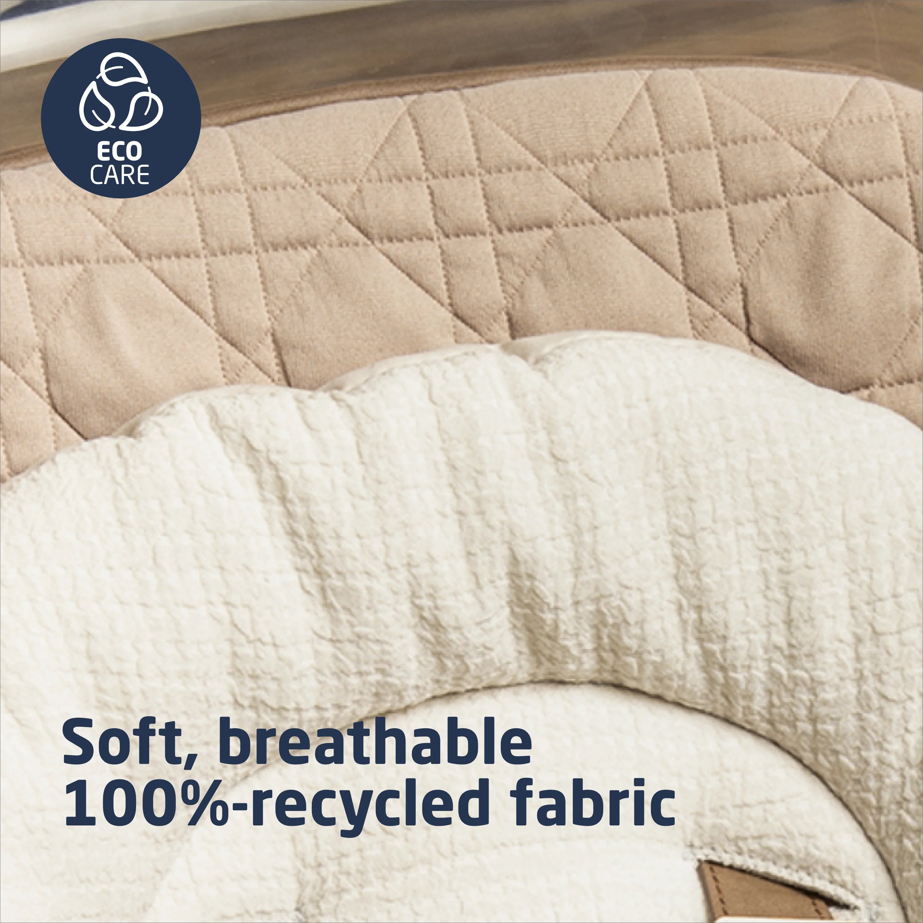 In addition to Kiskadee’s unique, high-quality craftsmanship and materials, is the luxe seat pad and infant insert made of EcoCare fabric, our future-friendly, 100%-recycled fabric made from plastic bottles. The yarn produced is soft, comfortable, and breathable––perfect for your little one.