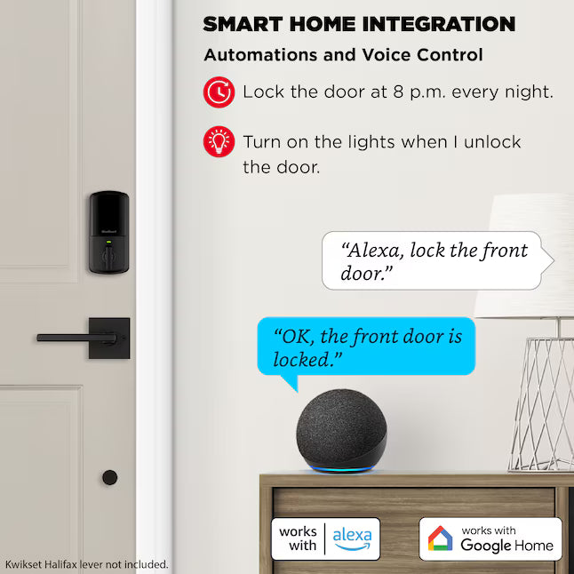 SMART HOME INTEGRATION: Works with Amazon Alexa or Google Home, control your lock with your voice and create helpful automations that keep your home secure