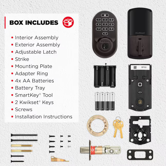 PRODUCT WARRANTY: Locks and handles have a lifetime mechanical and finish warranty and a 1-year electronics warranty; see Kwikset warranty for full details