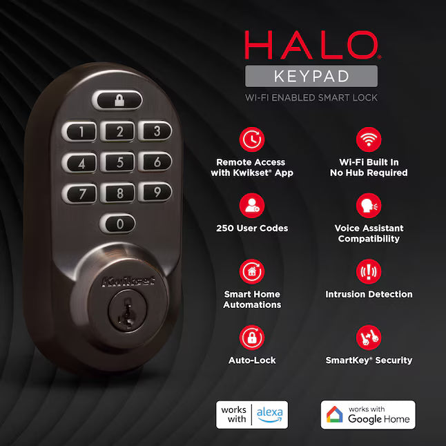Kwikset Halo Keypad Venetian Bronze Smart Wi-Fi and Keypad Electronic Deadbolt Lock ft. SmartKey Security
