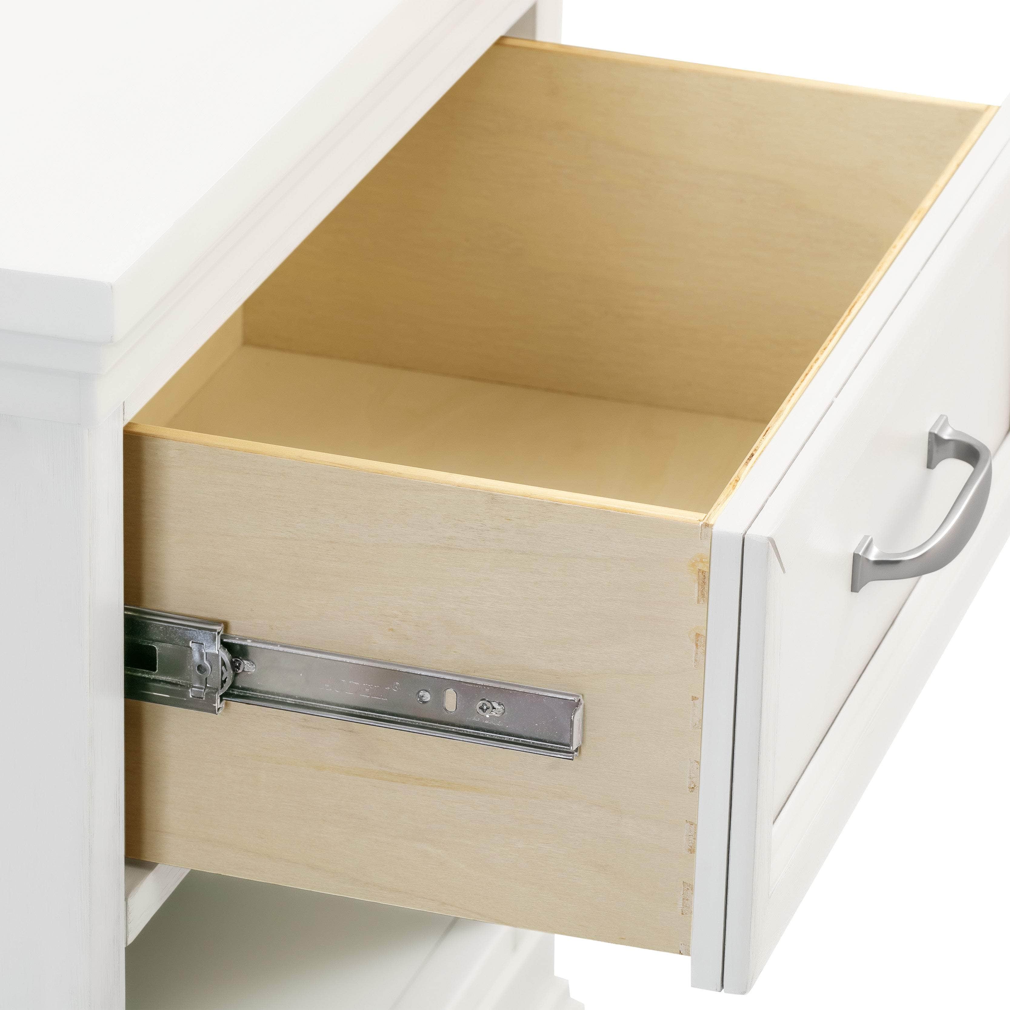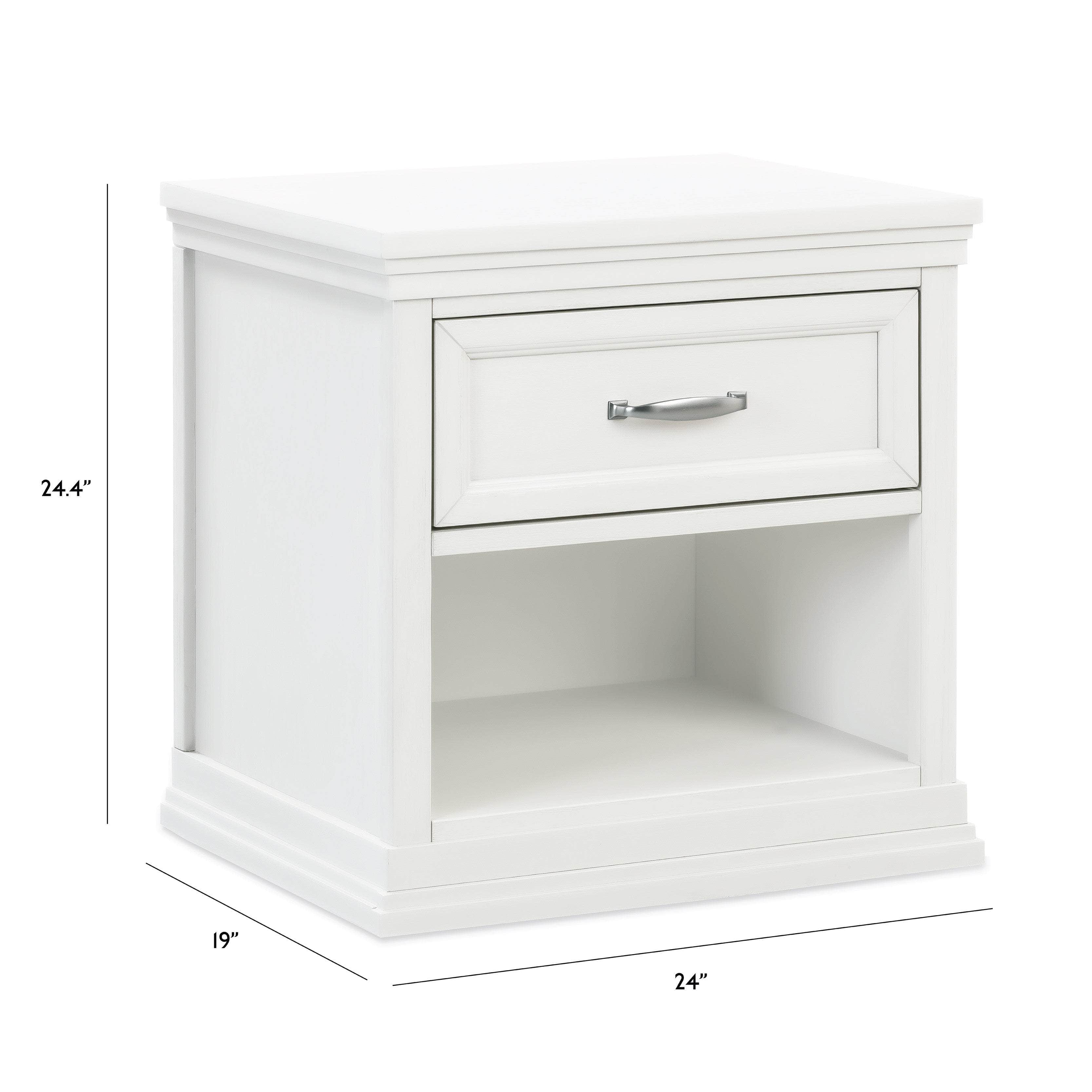 The Langford Nightstand blends the rustic charm of English country style with contemporary detailing. Featuring sophisticated detailing from top to bottom and complete with polished satin finished handles, the Langford nightstand is a transitional storage option in the home. Drawer features dovetail construction with self-closing, ball-bearing glides.