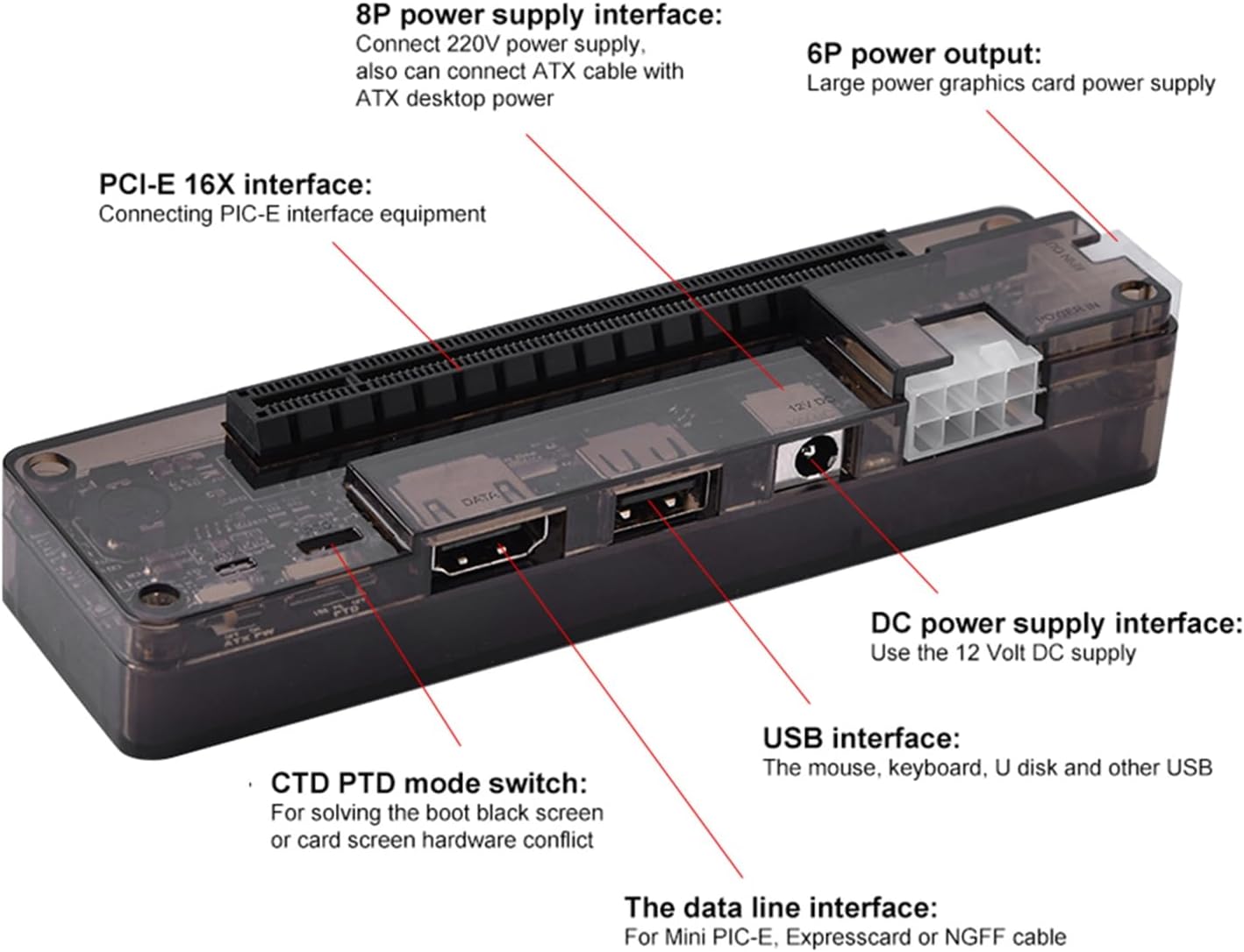 - support compatible switch hardware conflict resolution, laptop external video card dock, egpu enclosure, multistage anti interference circuit and data line reinforcement.