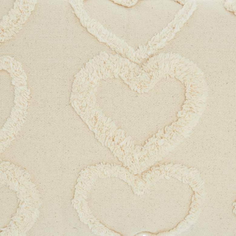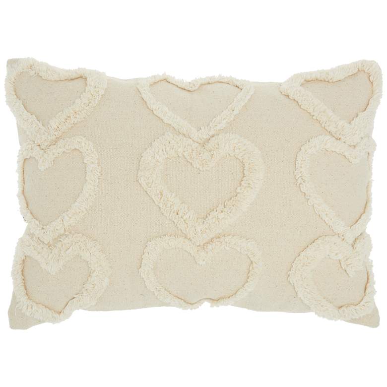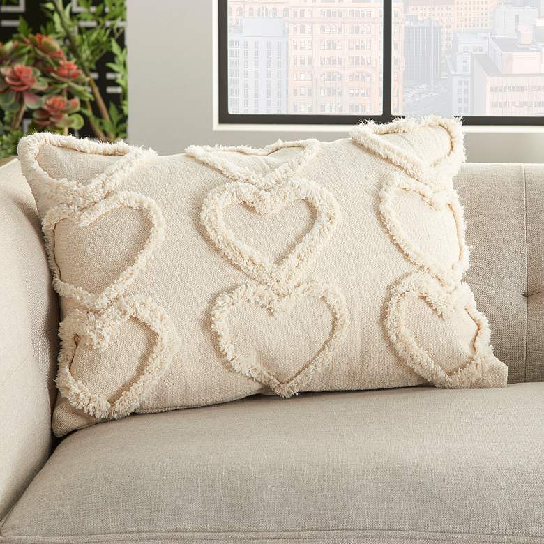 Raised hearts offer charming texturized personality to a throw pillow designed to embellish. This modern rectangular decorative throw pillow from the Life Styles collection designed by Mina Victory for Nourison infuses heartfelt sweetness and a lush look that delivers on comfort and style. Cream cotton fabric with tufted hearts on front and a solid back means versatility for blending with a variety of palettes. This rectangular pillow features a hidden zipper closure and poly fill.