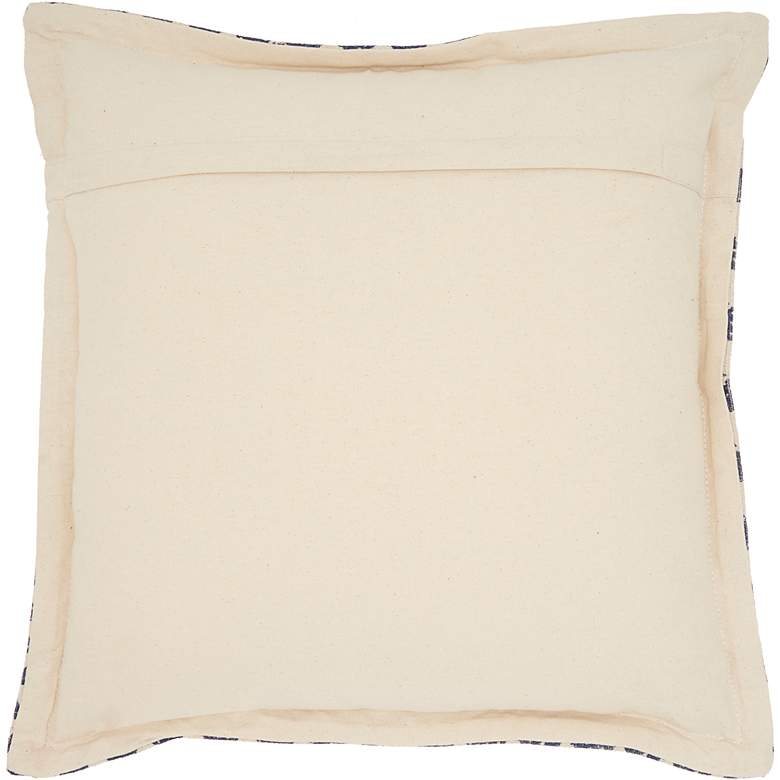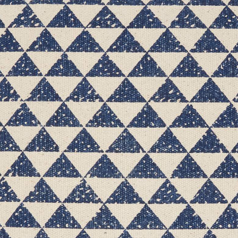 Designed by Nourison, this charming square throw pillow is covered in a bold indigo blue triangle motif with an ivory tone background. A matching solid ivory color cotton back with a zipper closure allows you to reshape for a more comfortable look and feel. Lastly, the flange edge all around provides a defined silhouette and final touch of elegance.